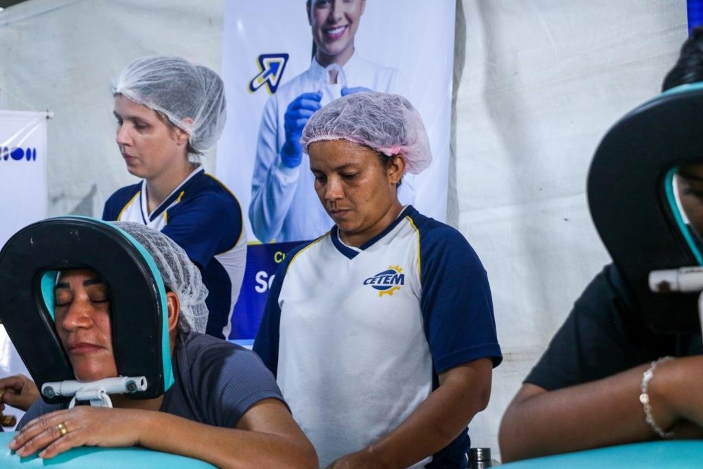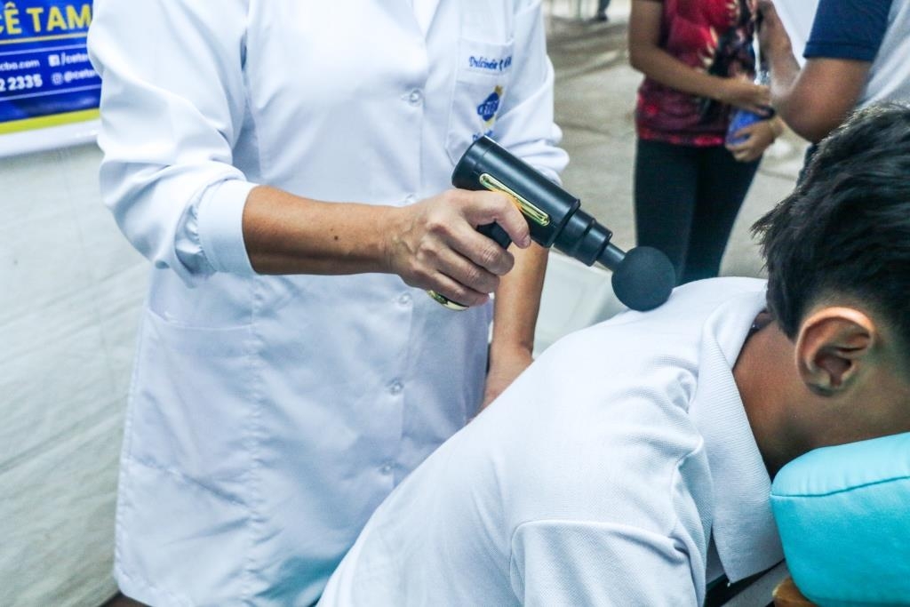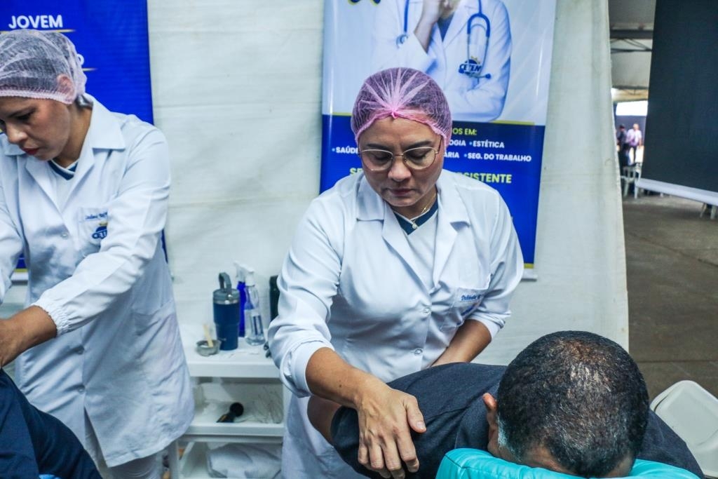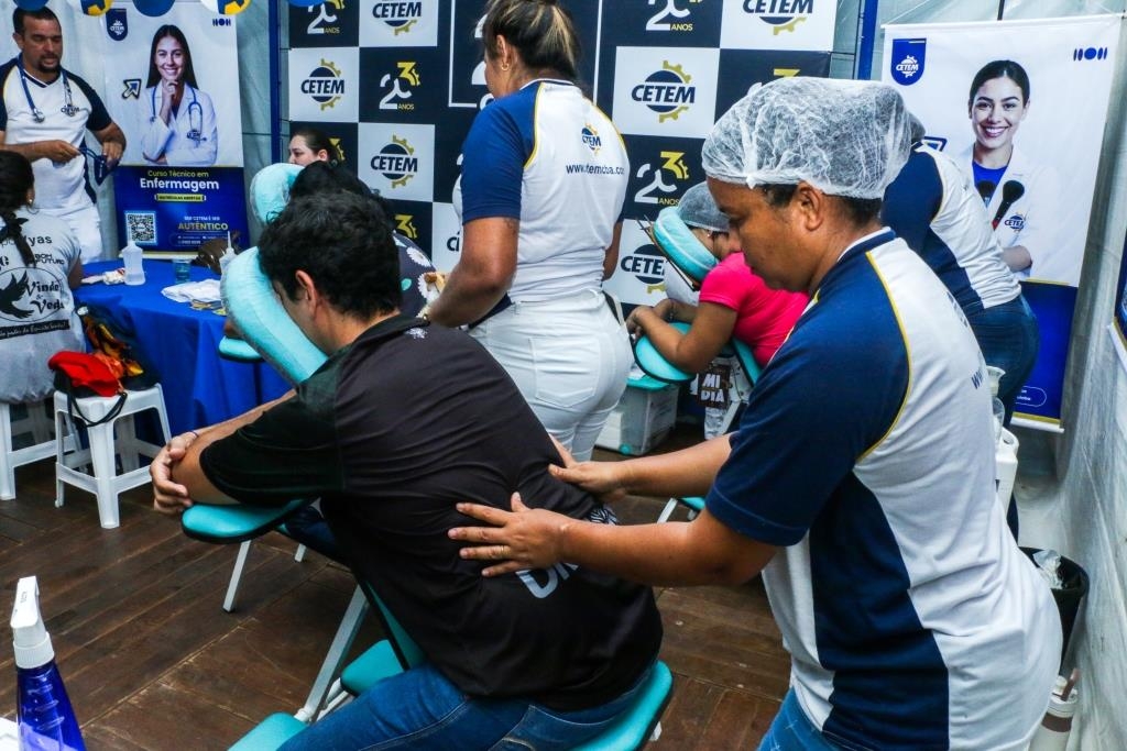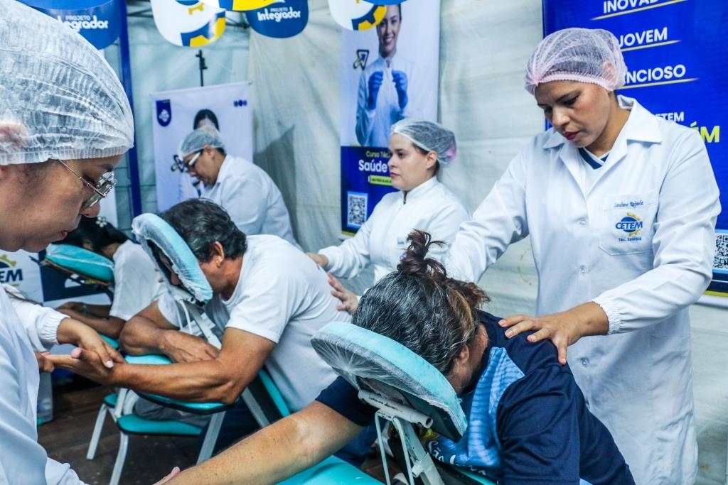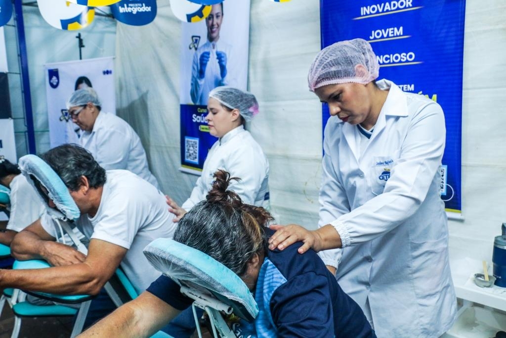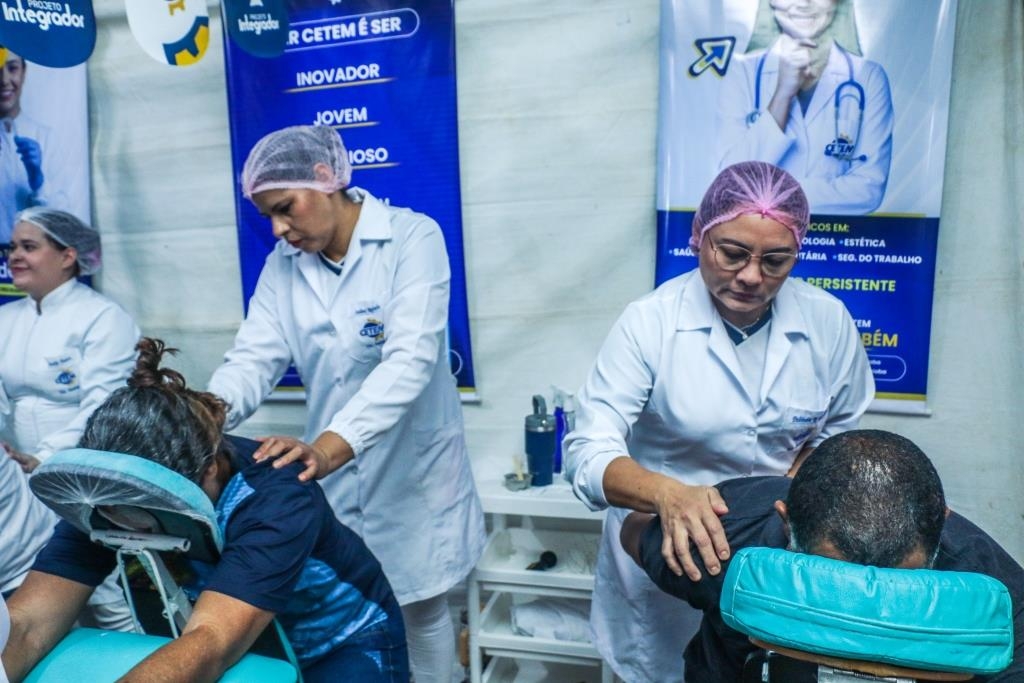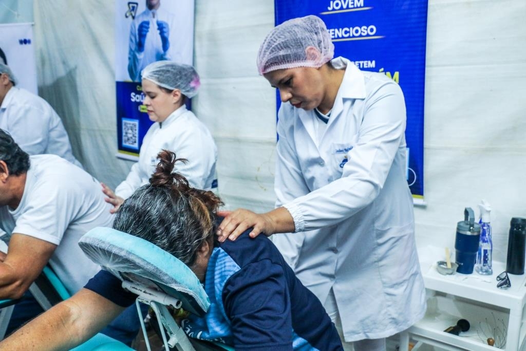 As atividades foram divididas entre cuidados terapêuticos e monitoramento de saúde. O curso Técnico em Estética foi um dos grandes destaques, realizando 483 sessões de quick massage, oferecendo momentos de relaxamento e alívio de tensões para o público. Paralelamente, as equipes de saúde realizaram 200 atendimentos focados em prevenção, que incluíram a aferição de pressão arterial e o cálculo de Índice de Massa Corporal (IMC).