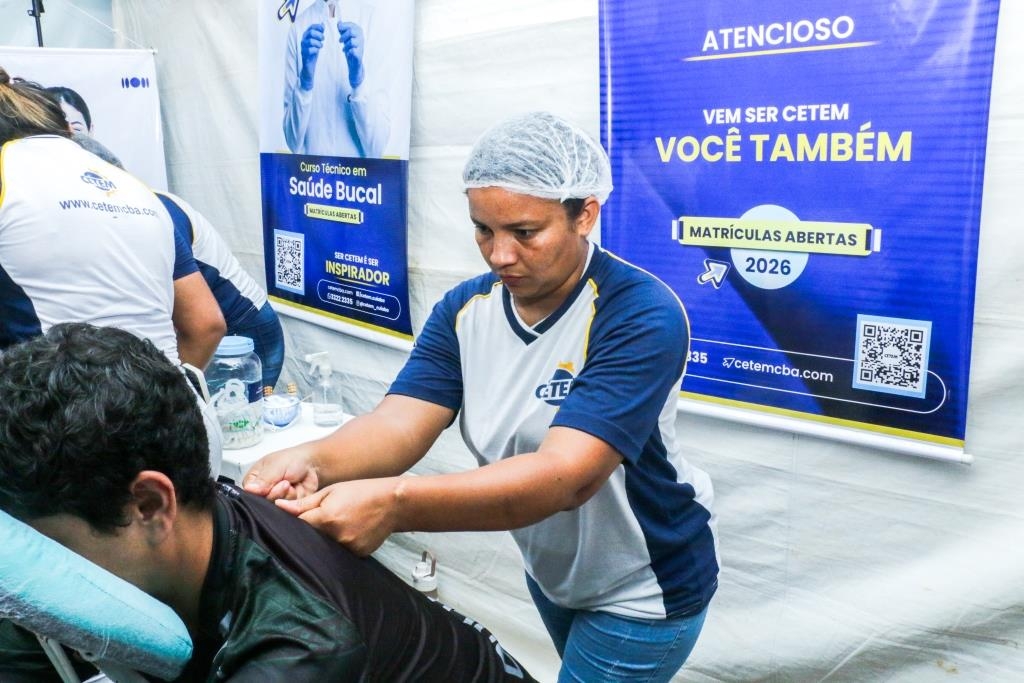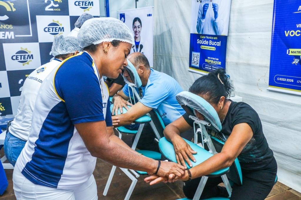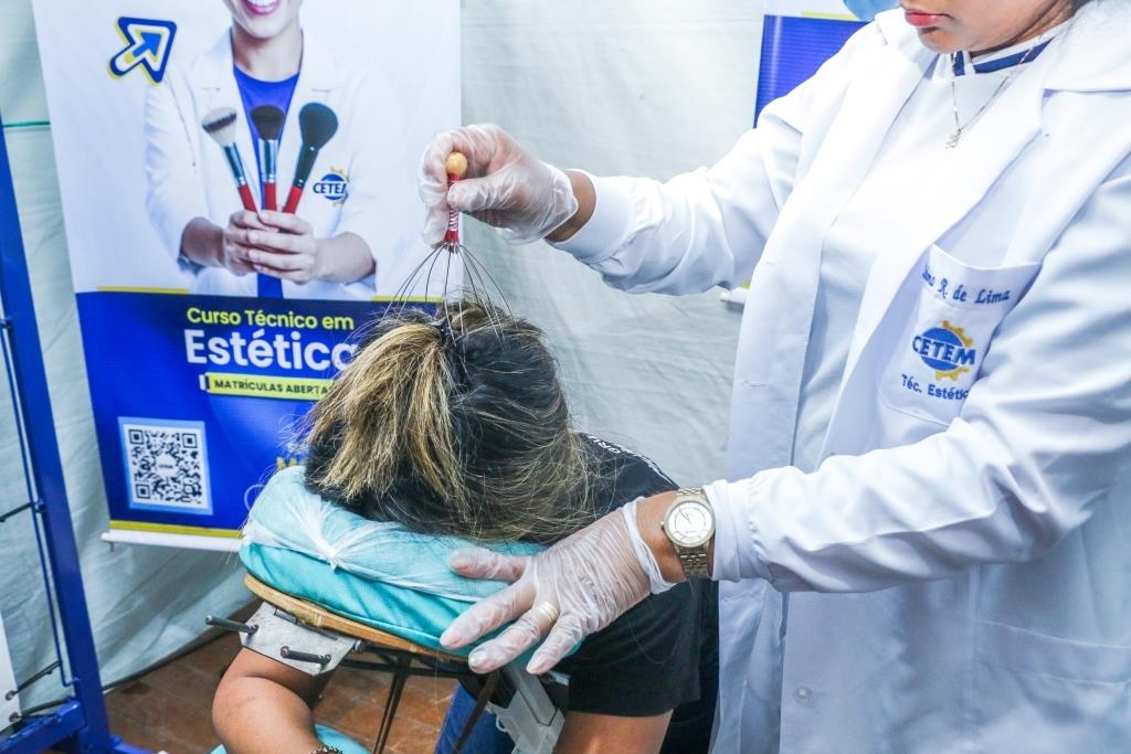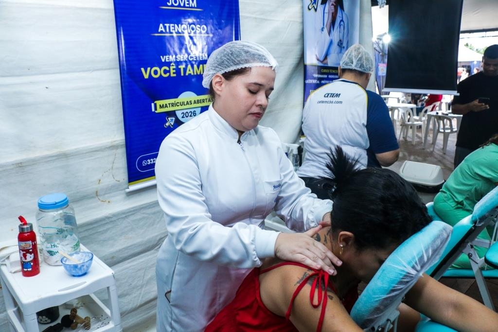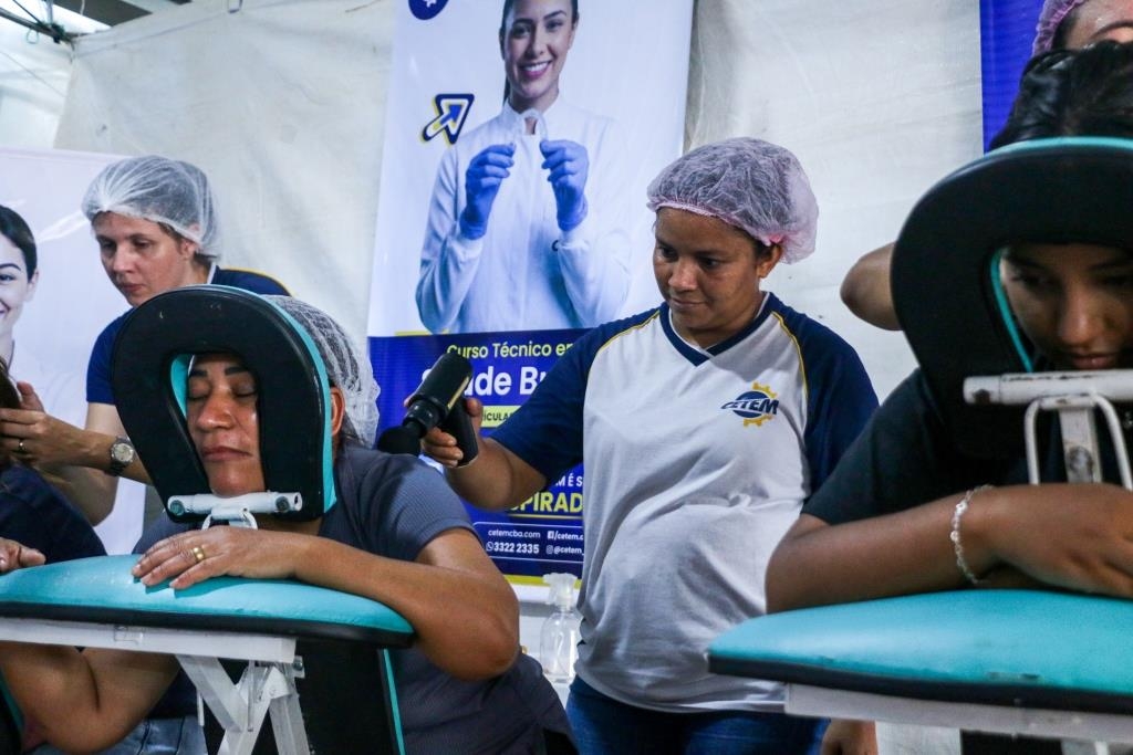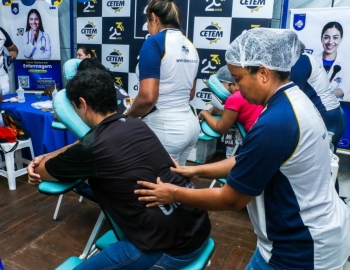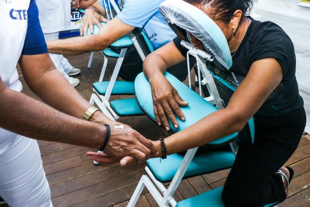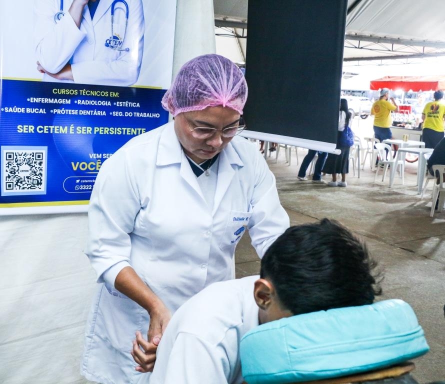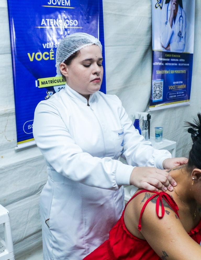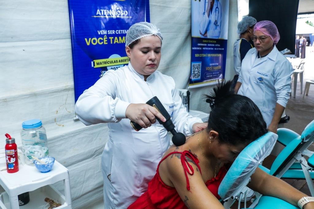 As atividades foram divididas entre cuidados terapêuticos e monitoramento de saúde. O curso Técnico em Estética foi um dos grandes destaques, realizando 483 sessões de quick massage, oferecendo momentos de relaxamento e alívio de tensões para o público. Paralelamente, as equipes de saúde realizaram 200 atendimentos focados em prevenção, que incluíram a aferição de pressão arterial e o cálculo de Índice de Massa Corporal (IMC).