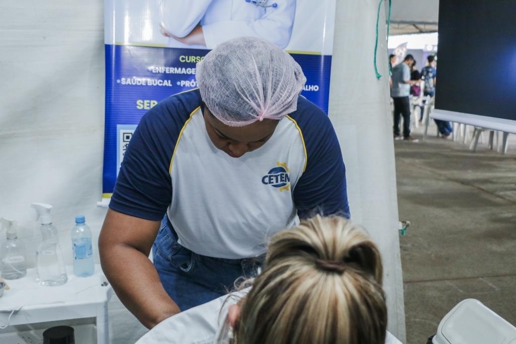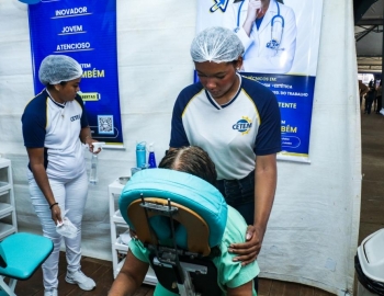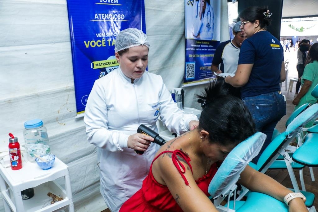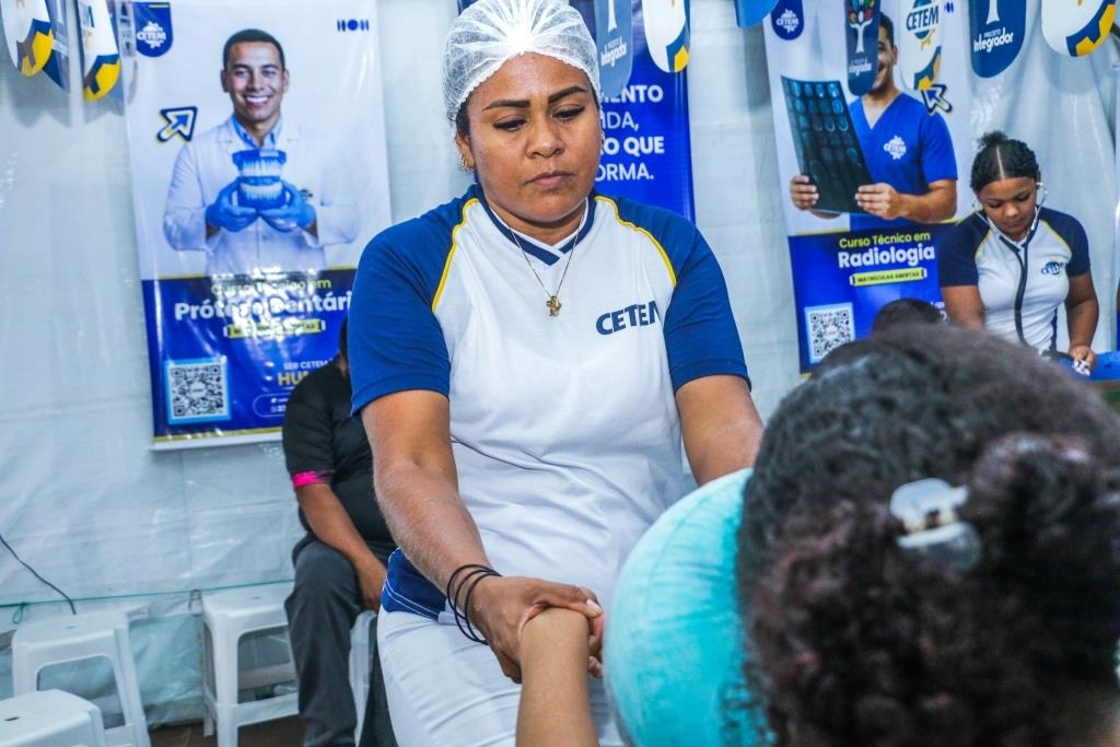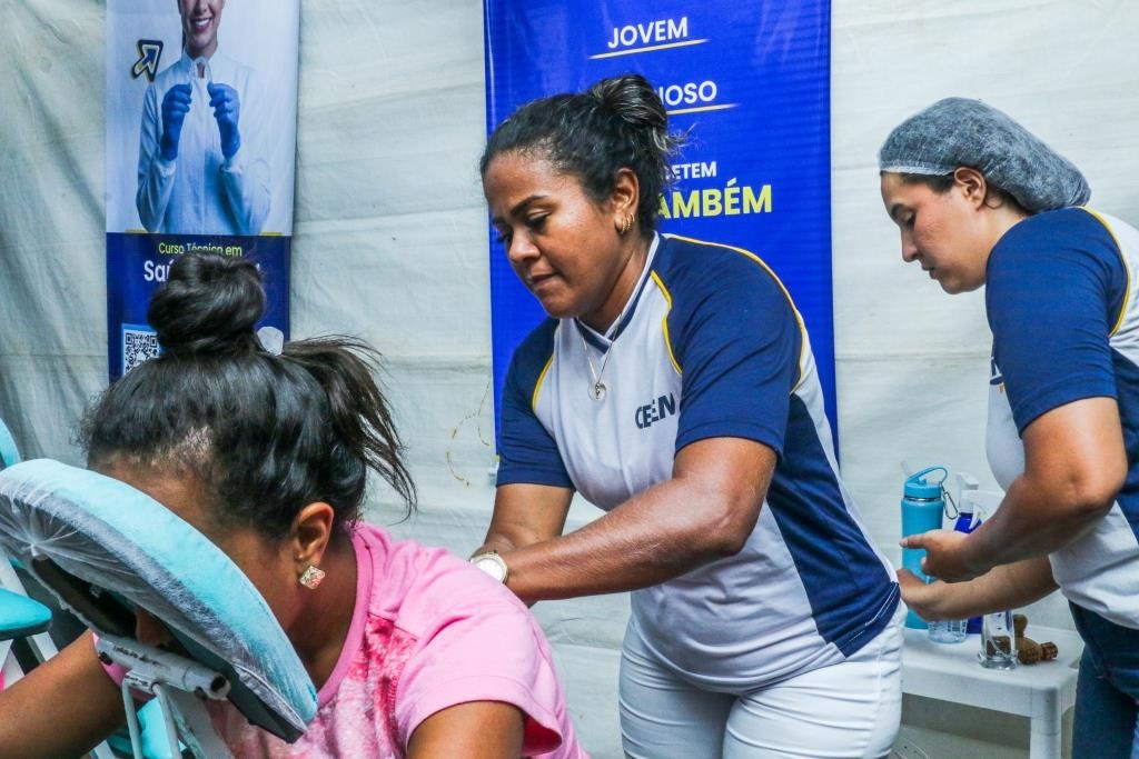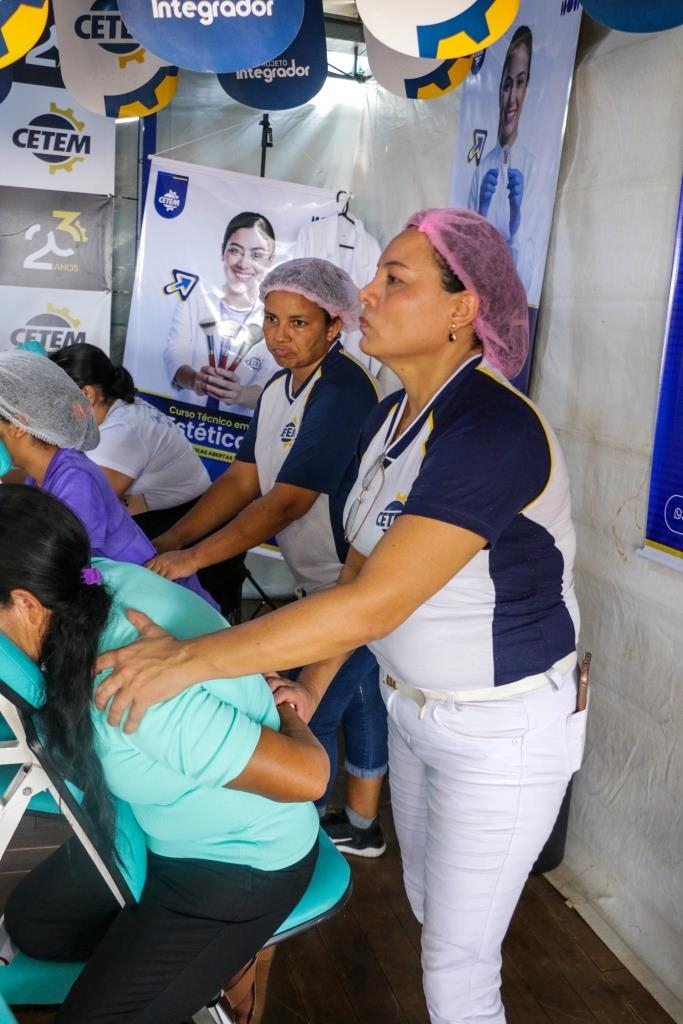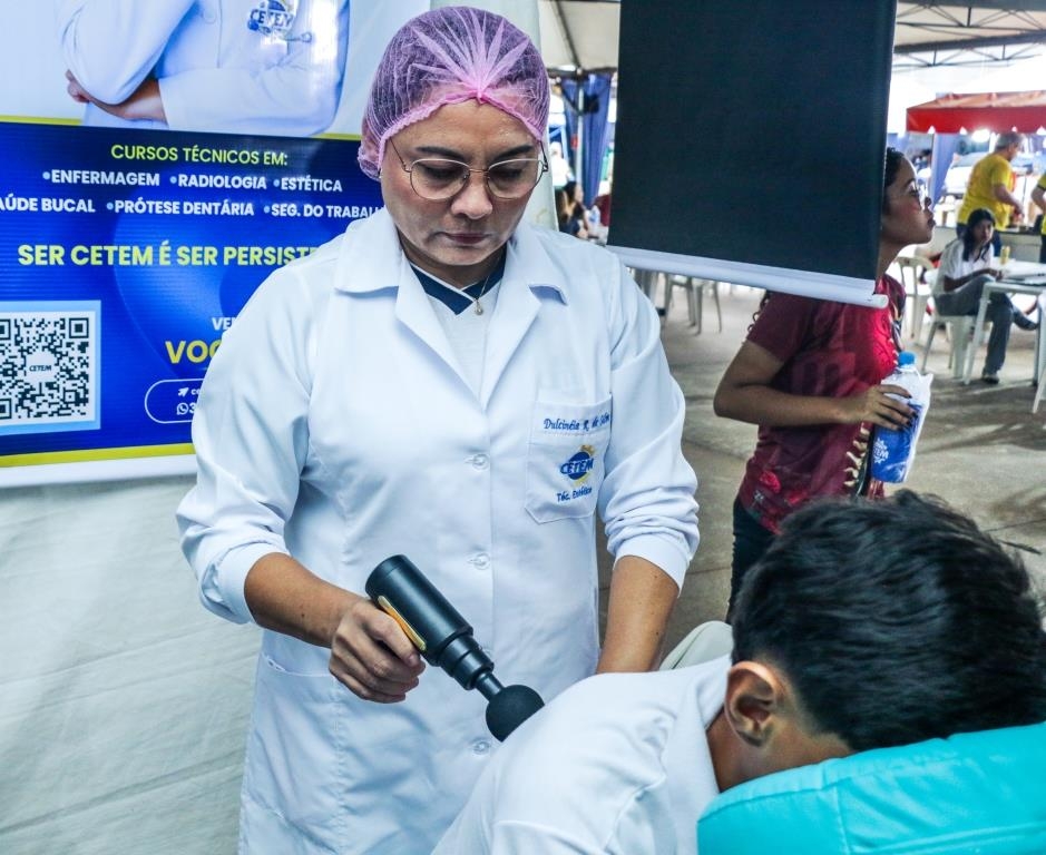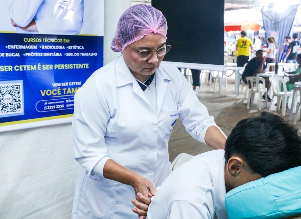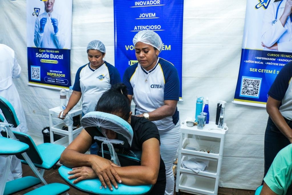 As atividades foram divididas entre cuidados terapêuticos e monitoramento de saúde. O curso Técnico em Estética foi um dos grandes destaques, realizando 483 sessões de quick massage, oferecendo momentos de relaxamento e alívio de tensões para o público. Paralelamente, as equipes de saúde realizaram 200 atendimentos focados em prevenção, que incluíram a aferição de pressão arterial e o cálculo de Índice de Massa Corporal (IMC).