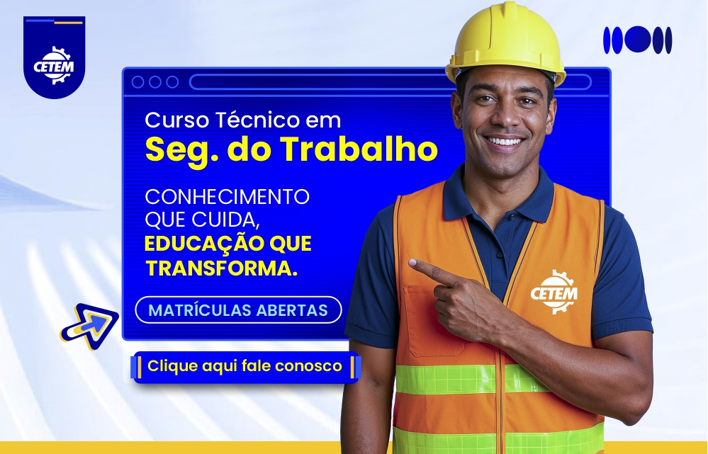 O Curso Técnico em Segurança do Trabalho do CETEM forma profissionais preparados para atuar na prevenção de acidentes e doenças ocupacionais, promovendo ambientes de trabalho mais seguros e saudáveis. A formação vai além das normas técnicas: inclui também práticas relacionadas à saúde, higiene ocupacional, gestão de riscos e qualidade de vida no trabalho.