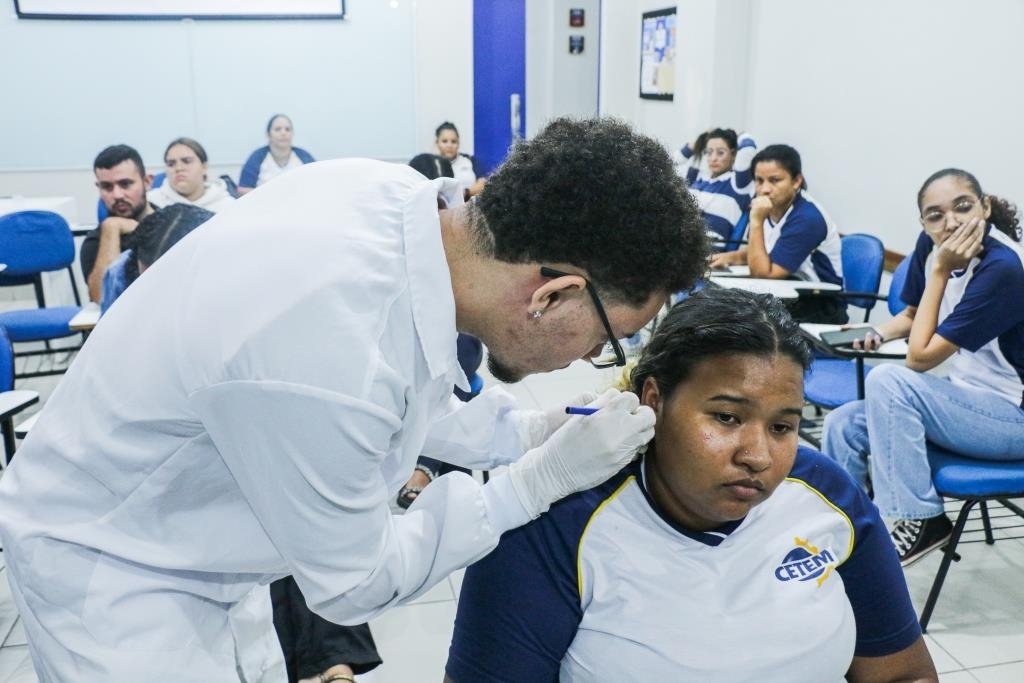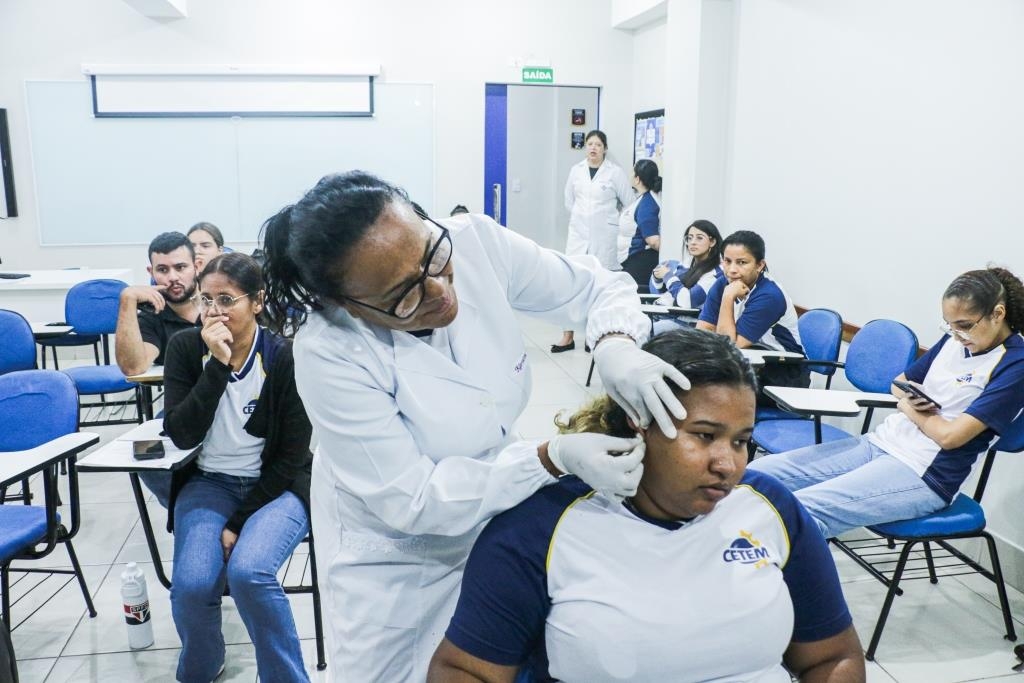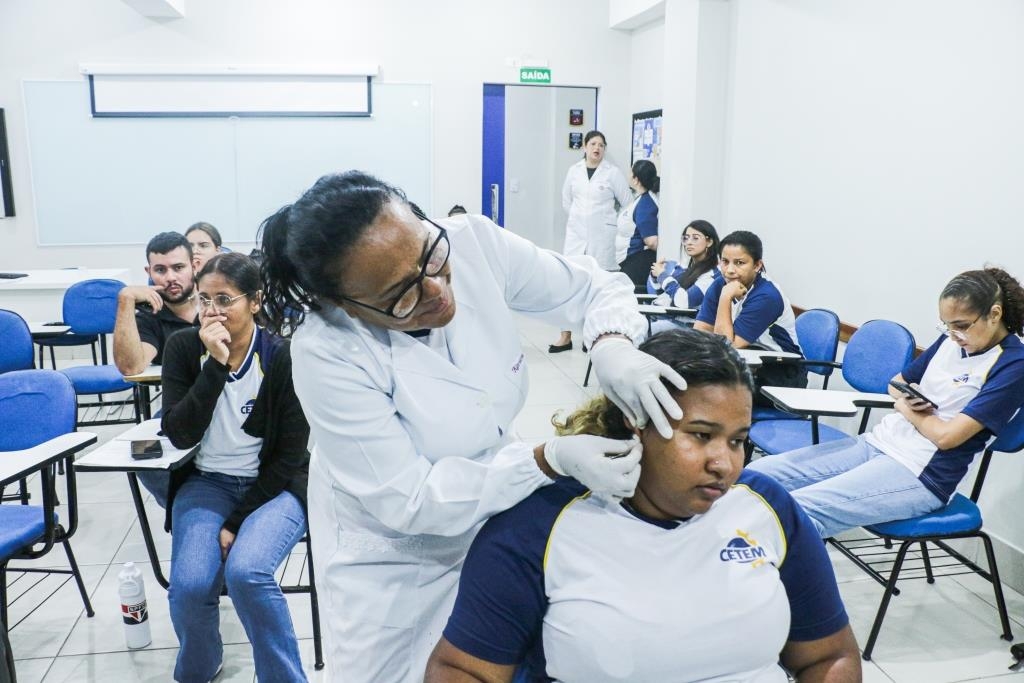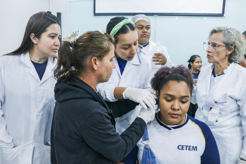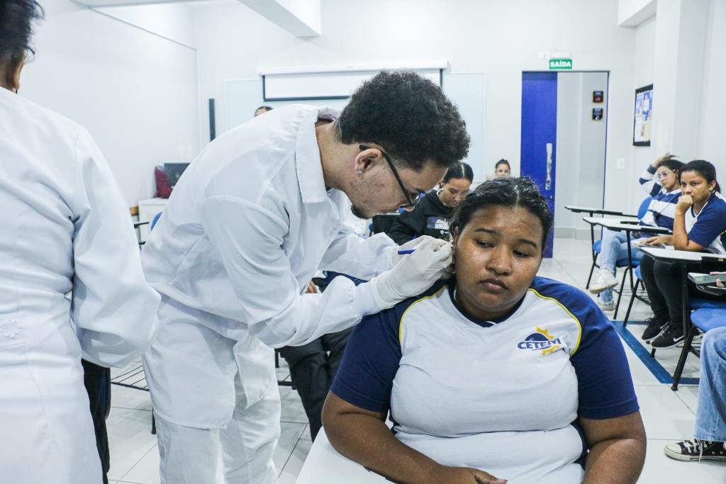 A turma de Farmácia deu um show de competência na ação de furo de orelha realizada aqui no CETEM. Com a orientação da Prof.ª Bianka, os alunos puderam exercitar o atendimento e a segurança que a profissão exige.