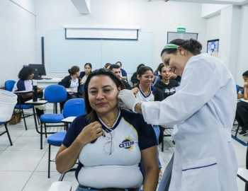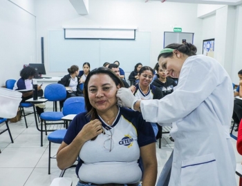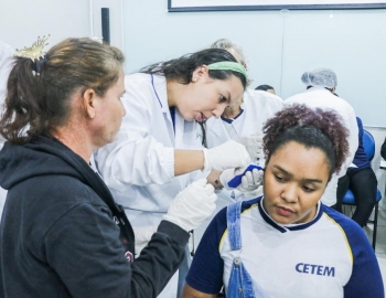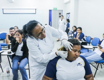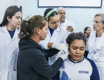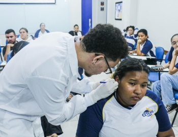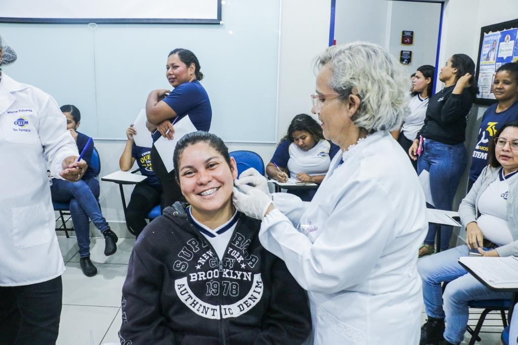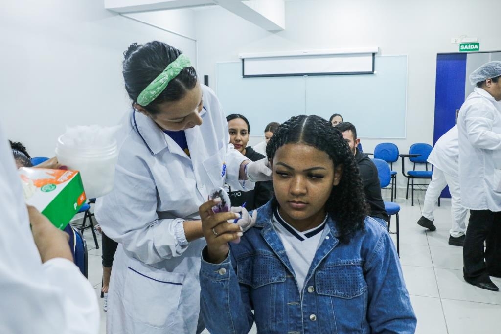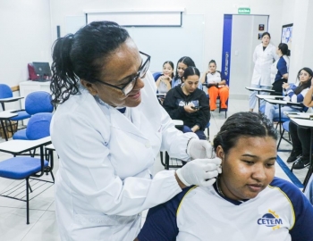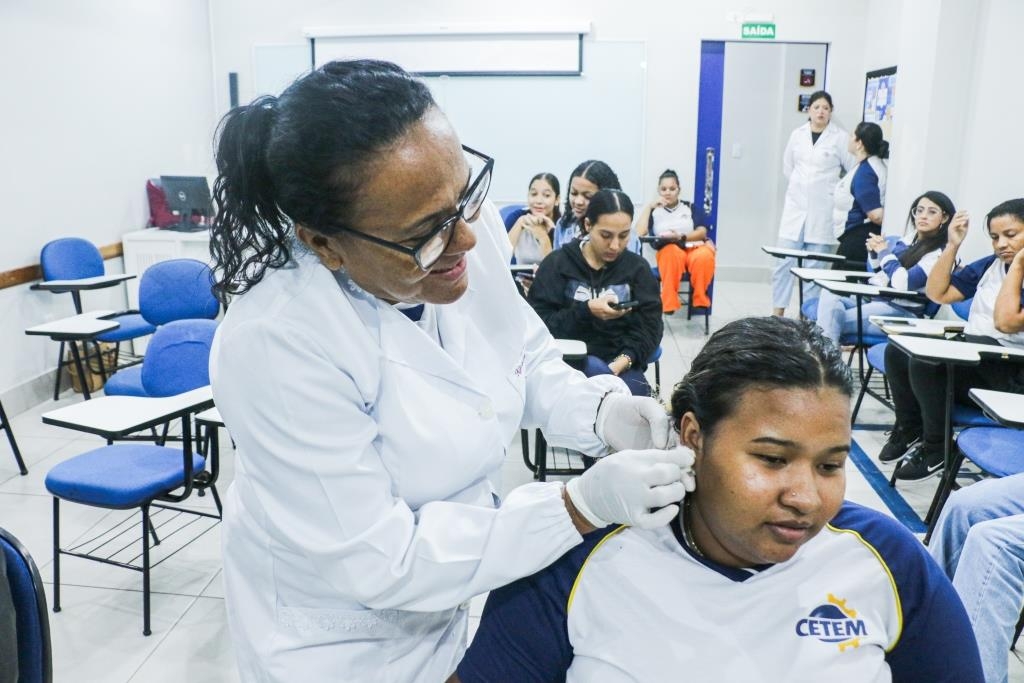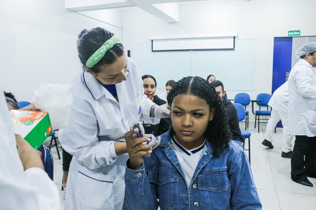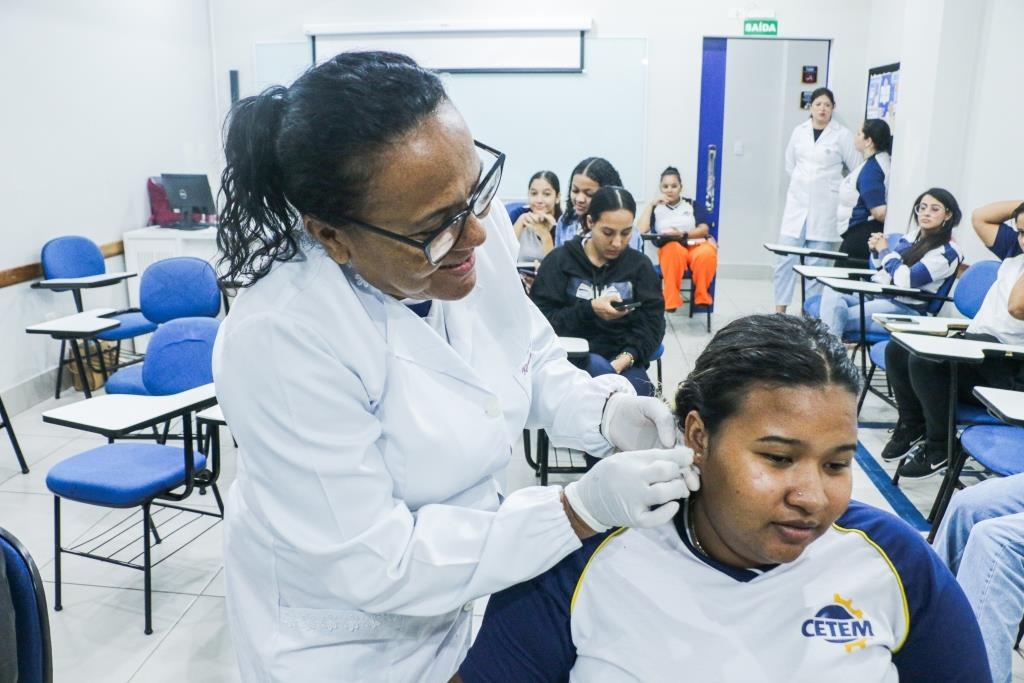 A turma de Farmácia deu um show de competência na ação de furo de orelha realizada aqui no CETEM. Com a orientação da Prof.ª Bianka, os alunos puderam exercitar o atendimento e a segurança que a profissão exige.