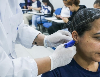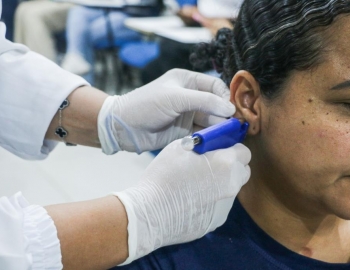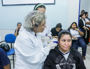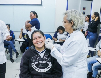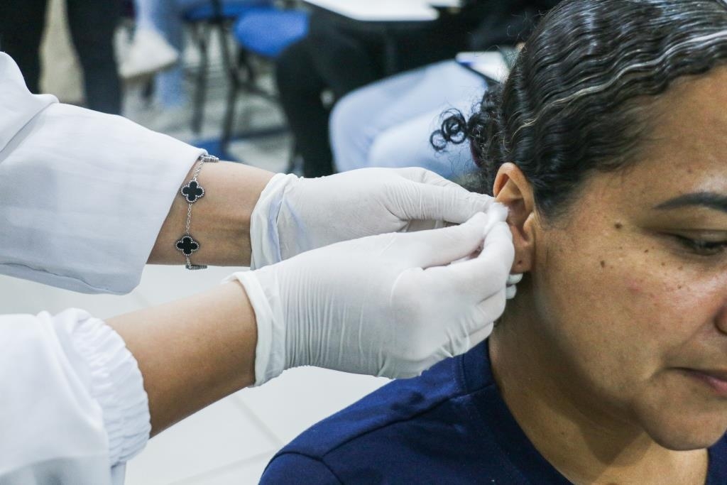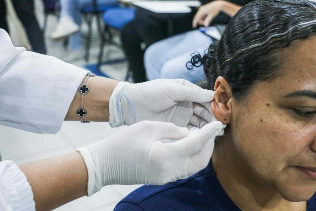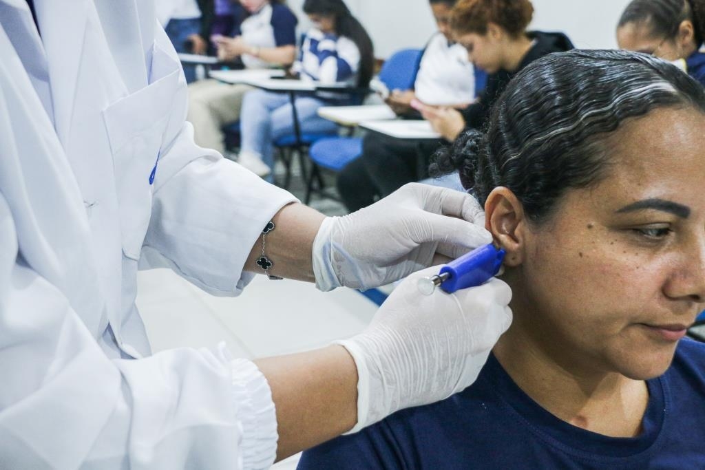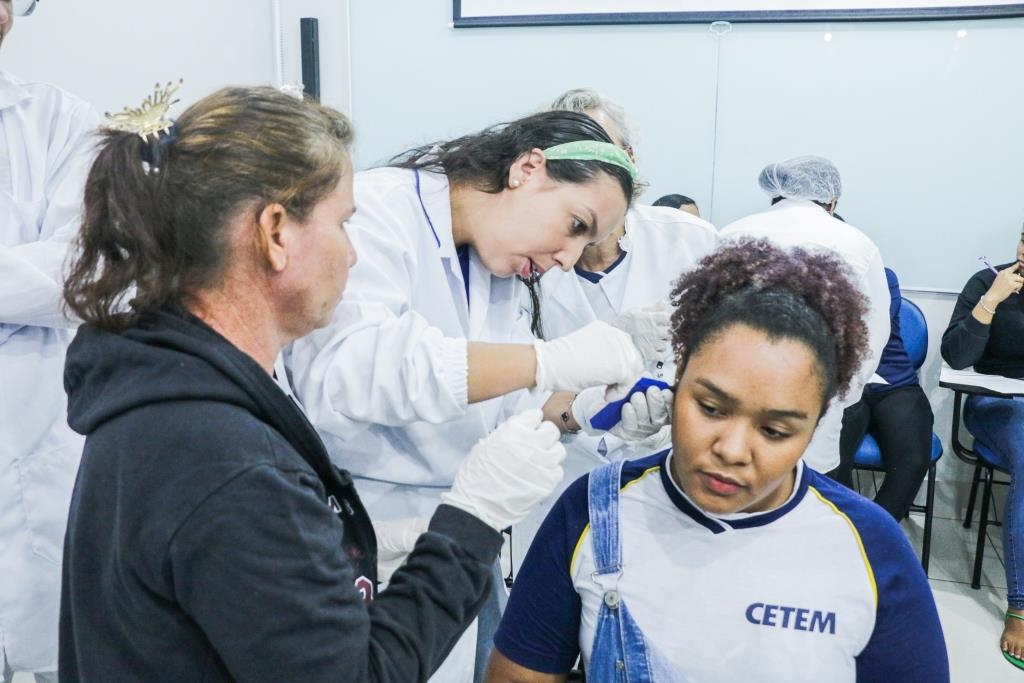 Ação de furo de orelha realizada pela turma de Técnico em Farmácia