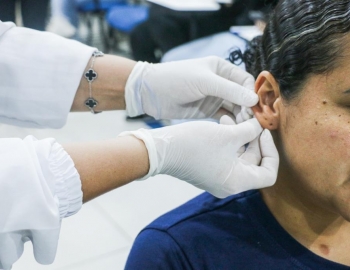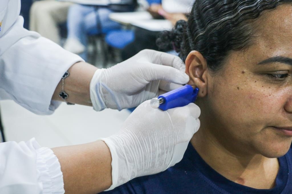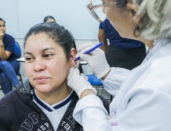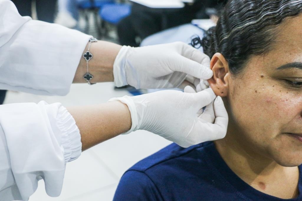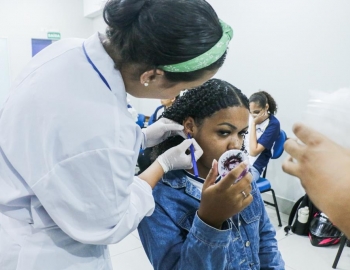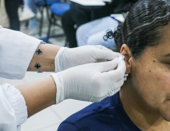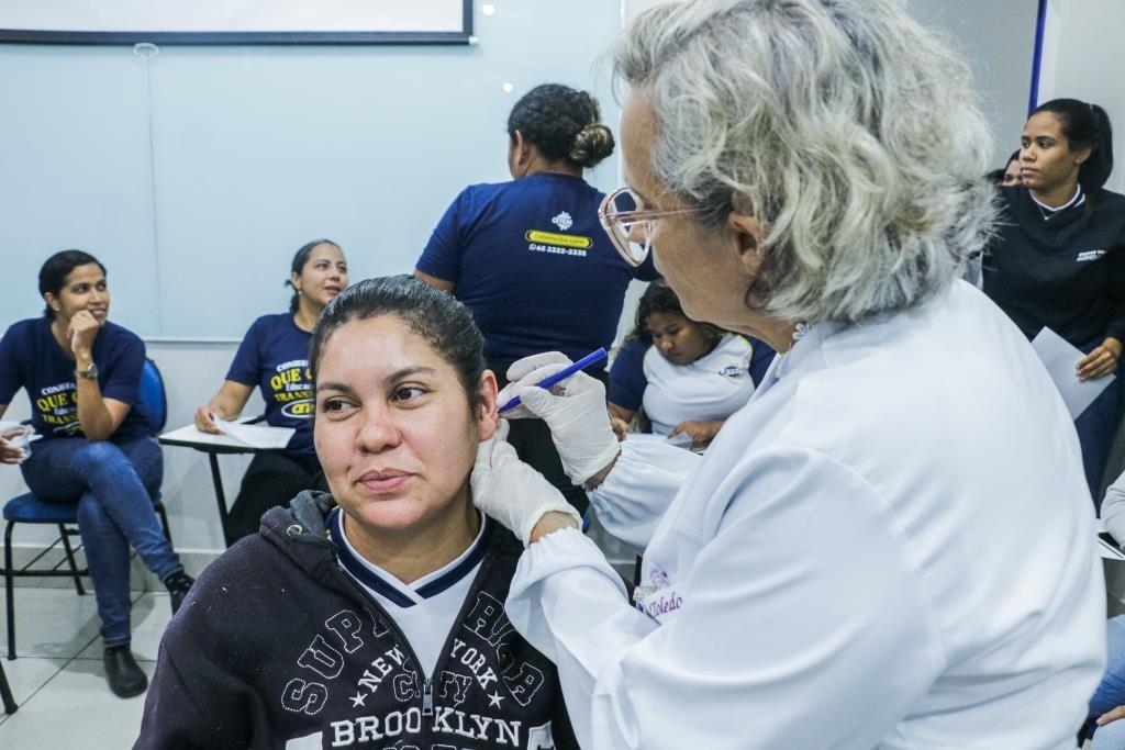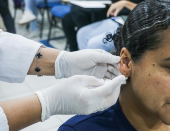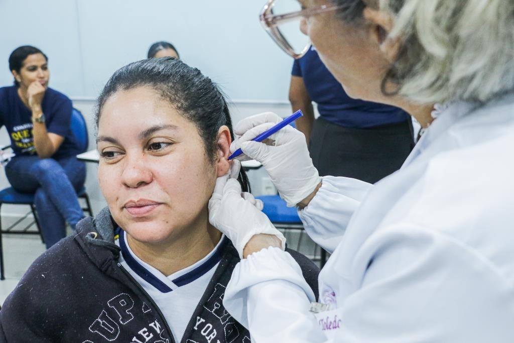 Ação de furo de orelha realizada pela turma de Técnico em Farmácia