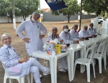 Grupo de estágio de Técnico em Enfermagem participou da ação "Dias pela Melhor Idade" na Praça do Amarelinho