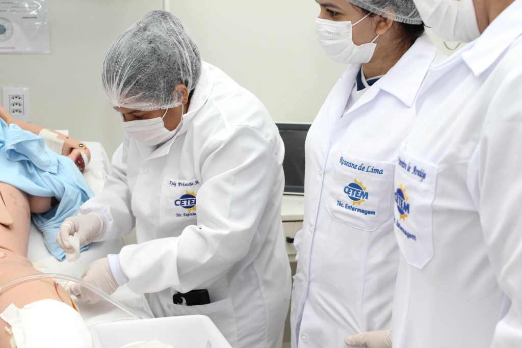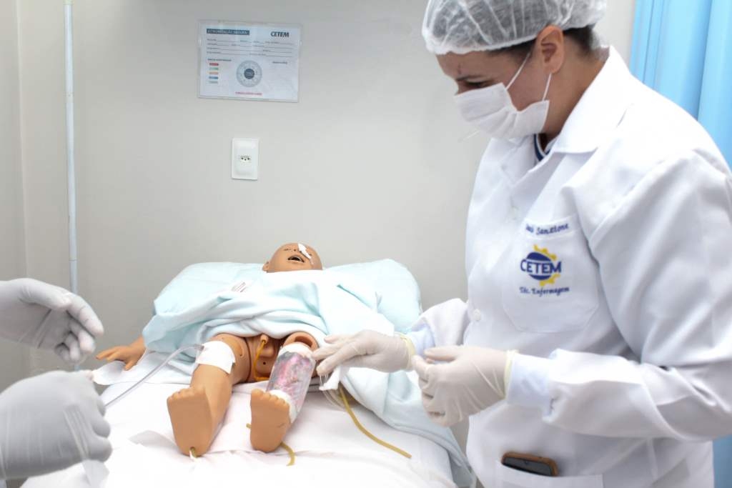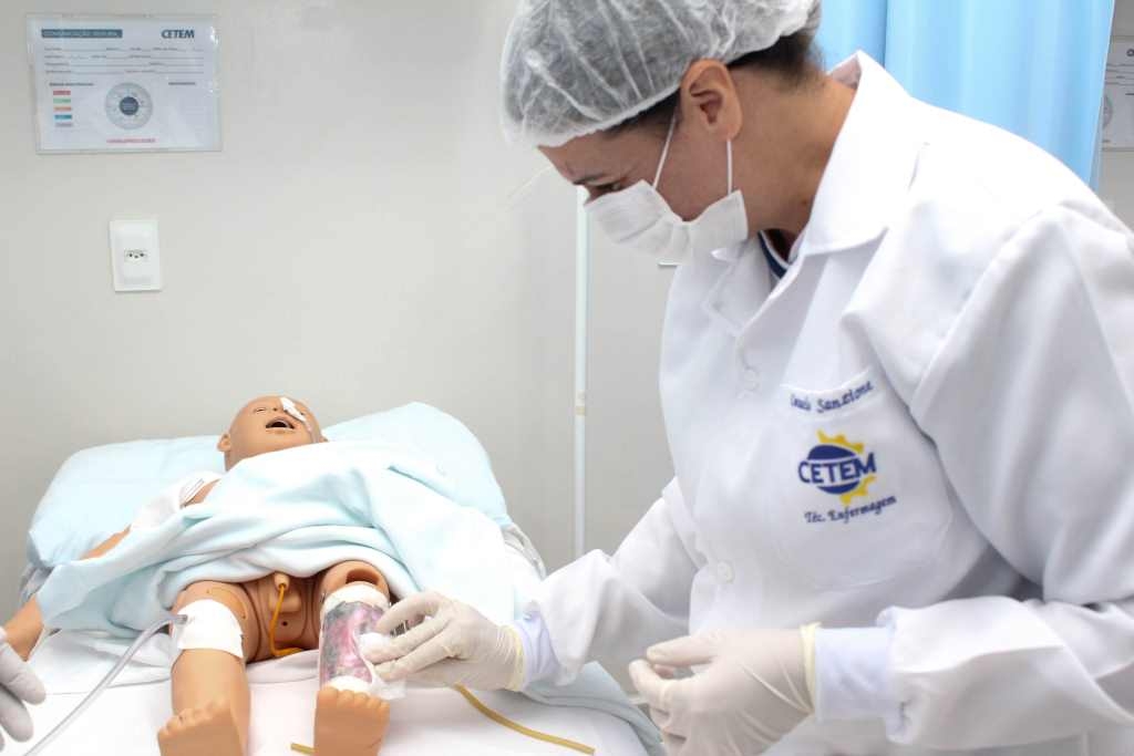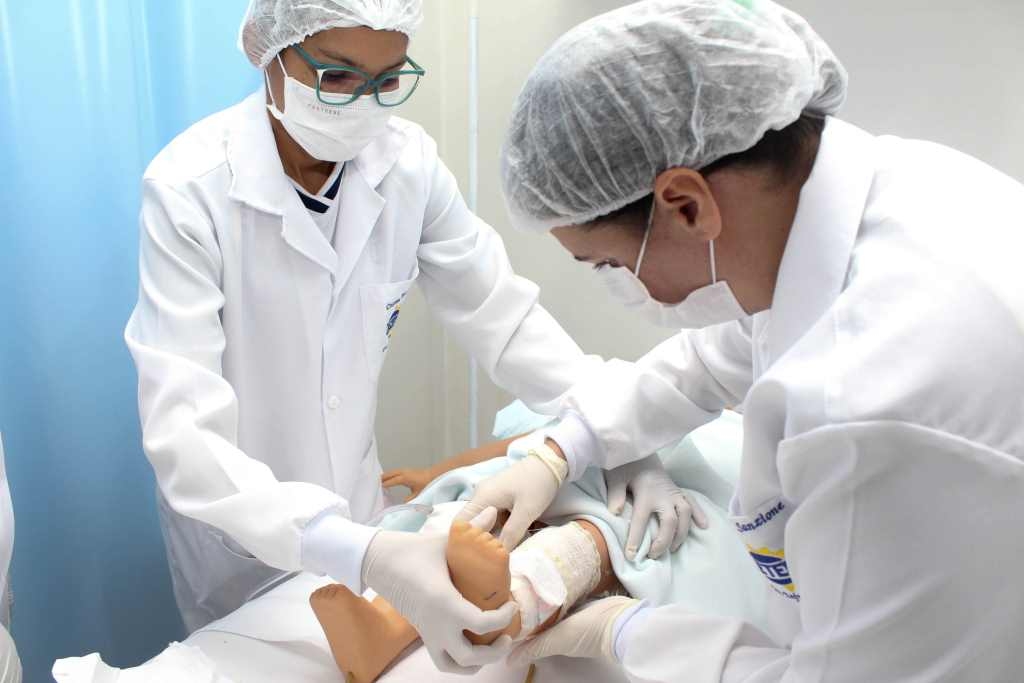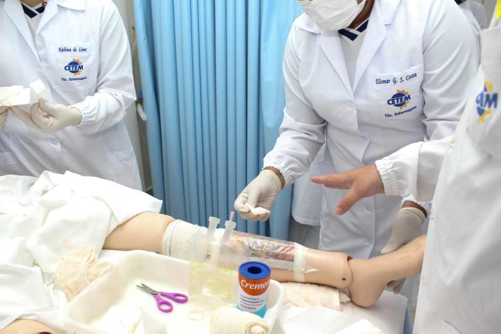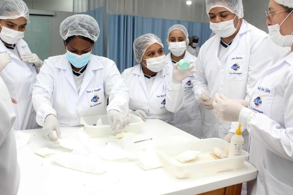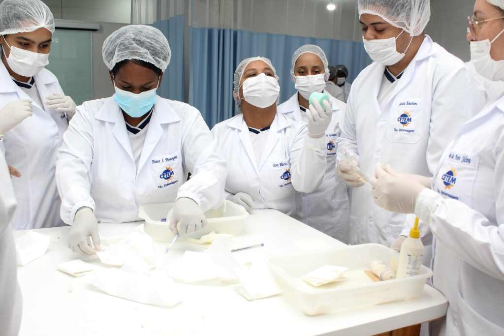 Aula prática curso Técnico em Enfermagem professora Rosemara