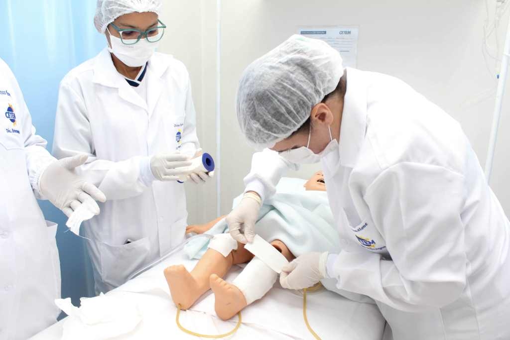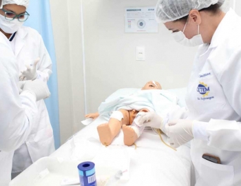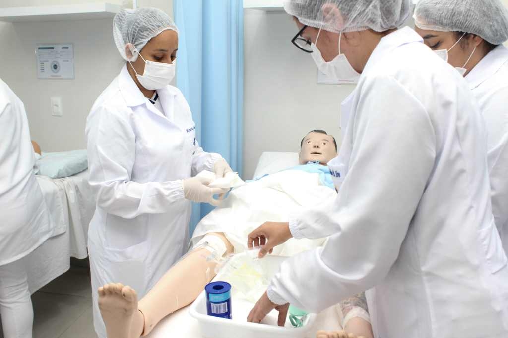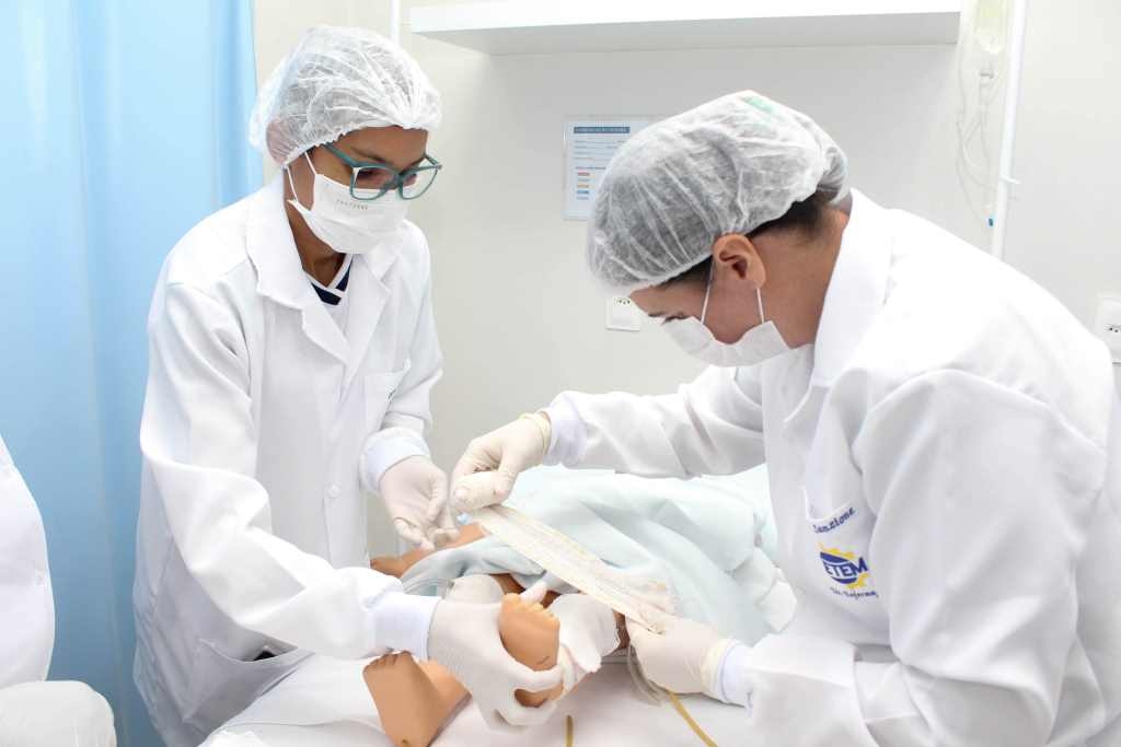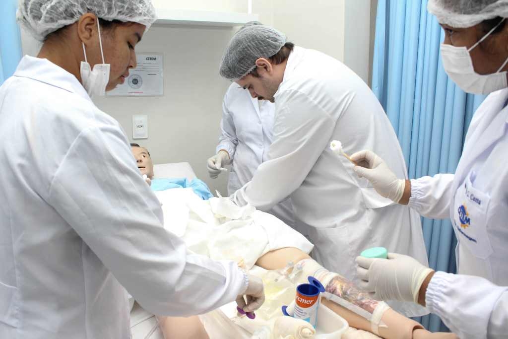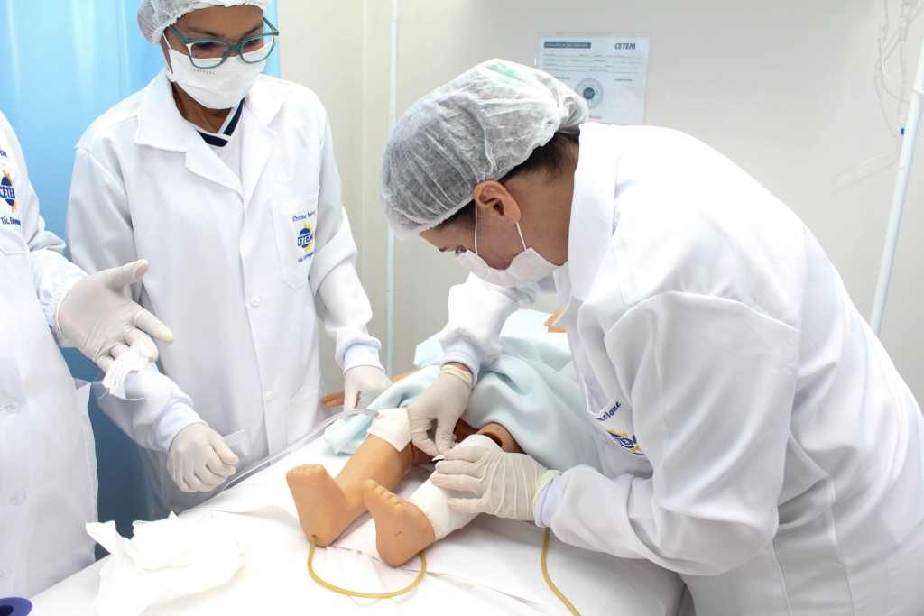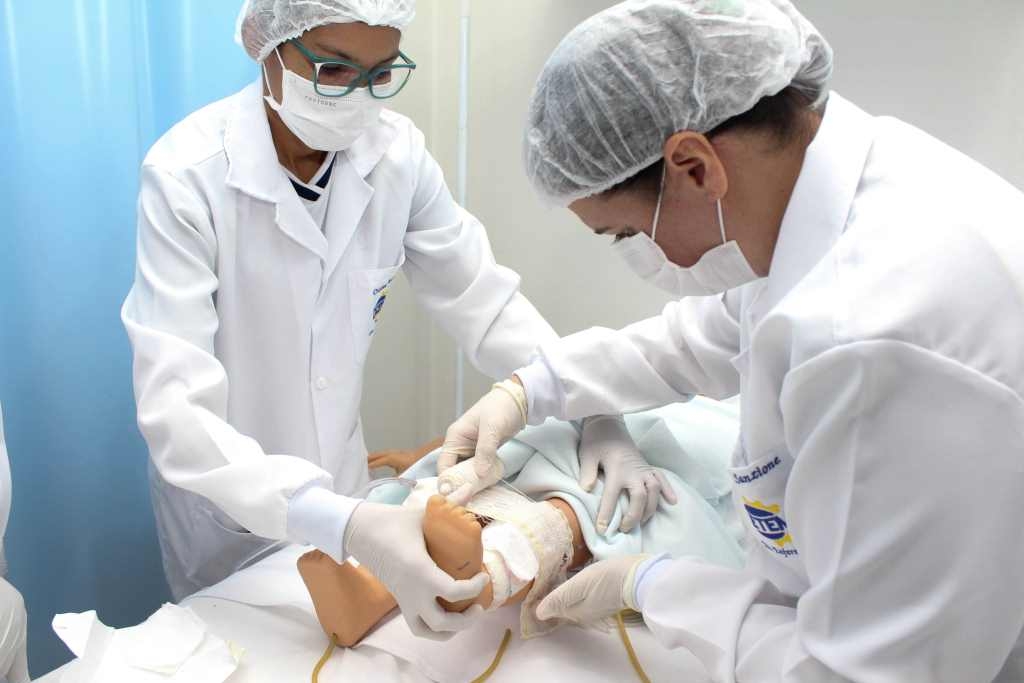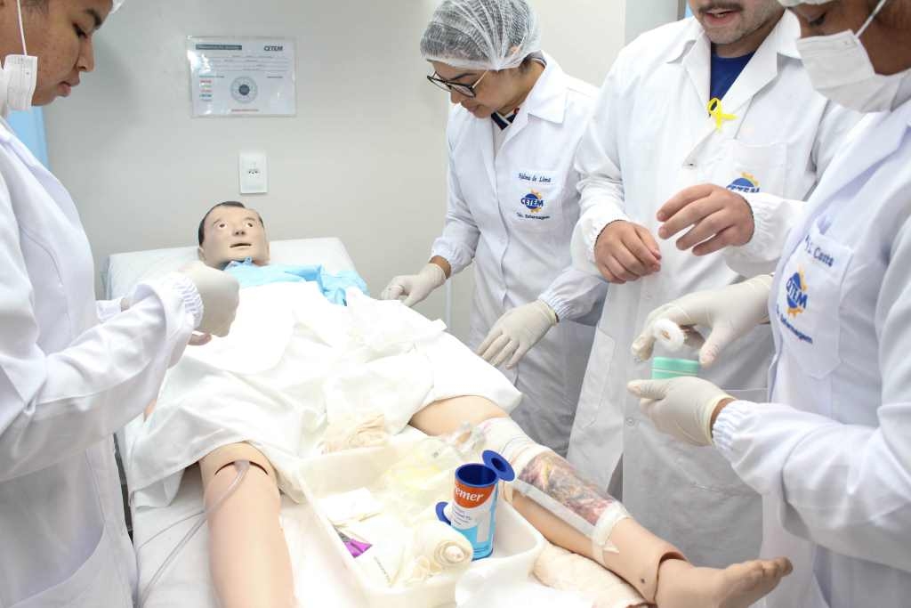 Aula prática curso Técnico em Enfermagem professora Rosemara