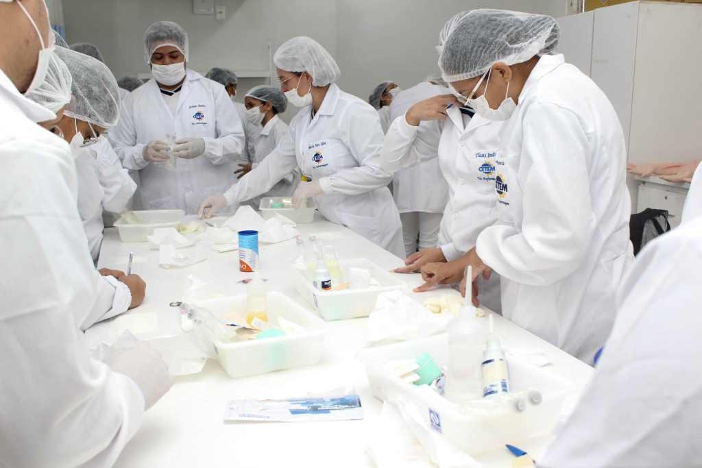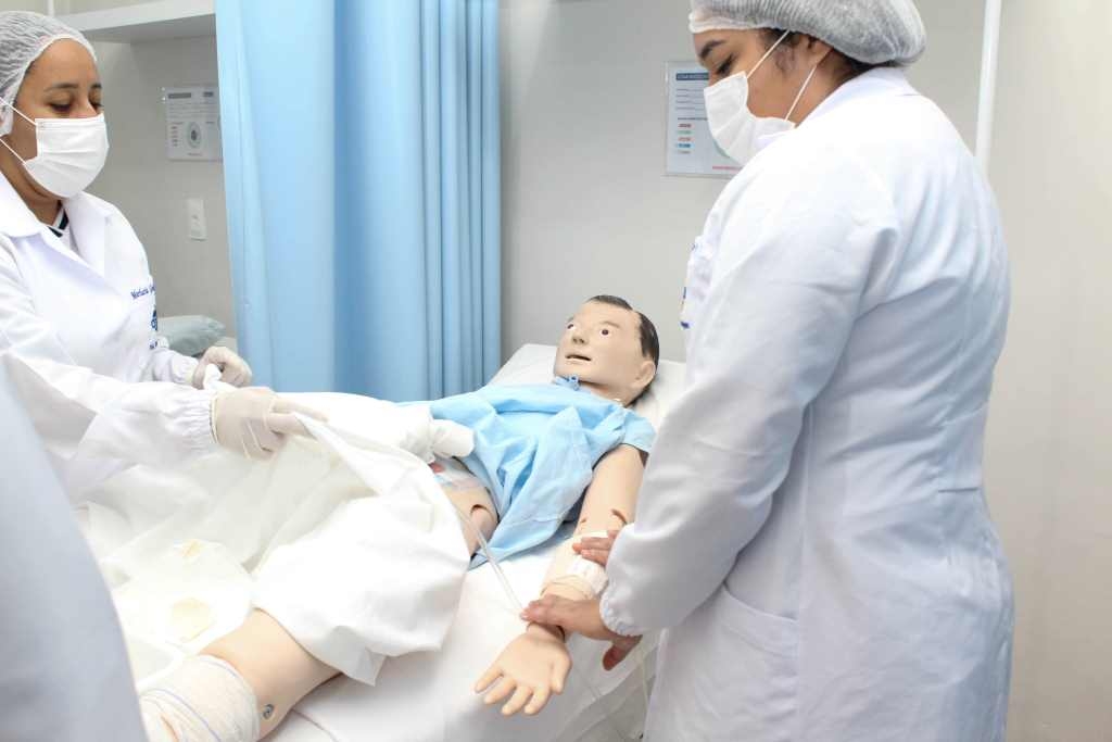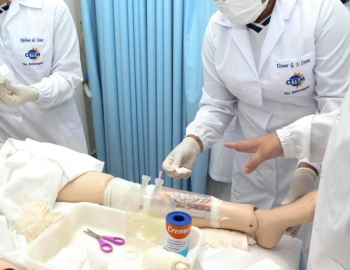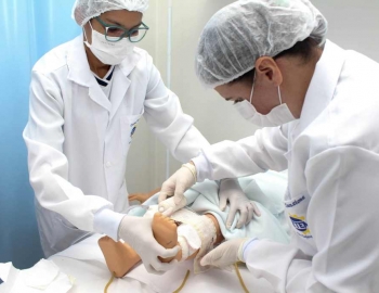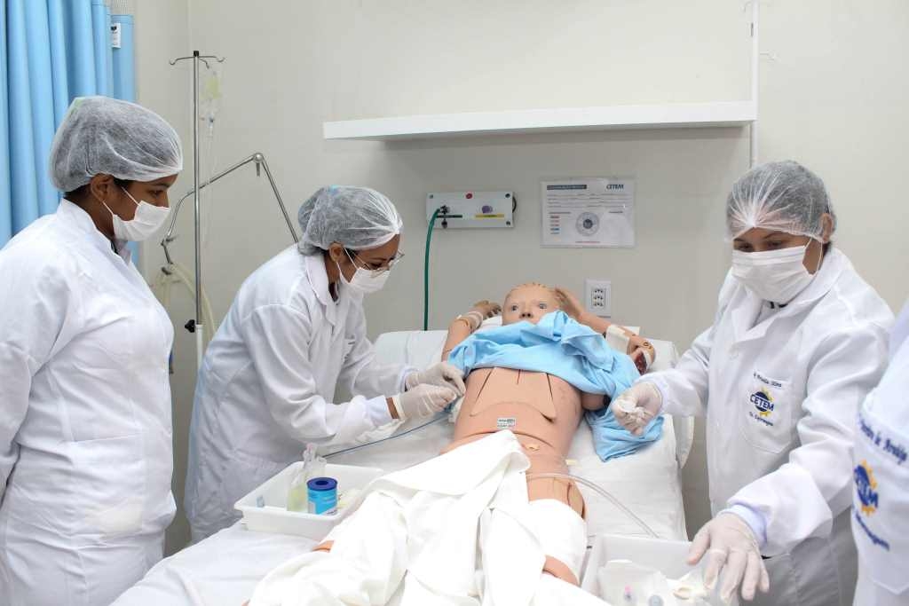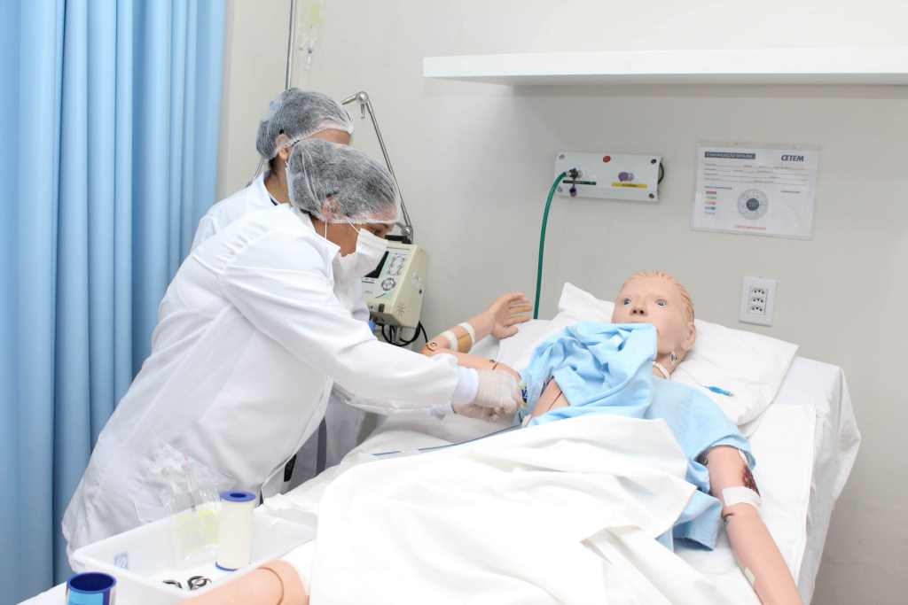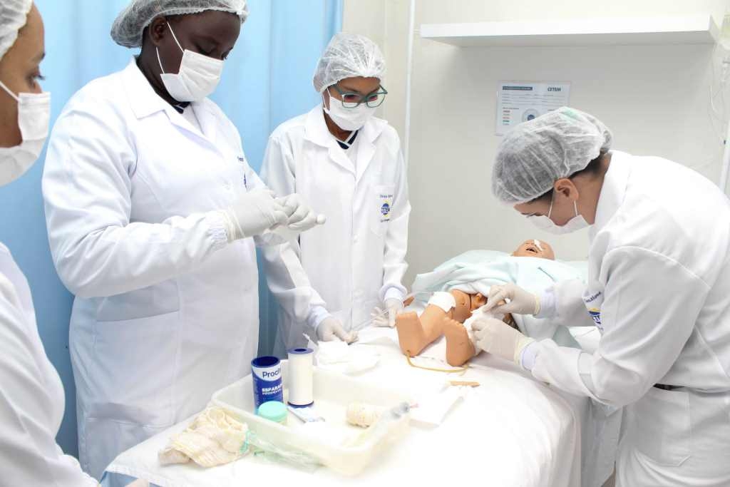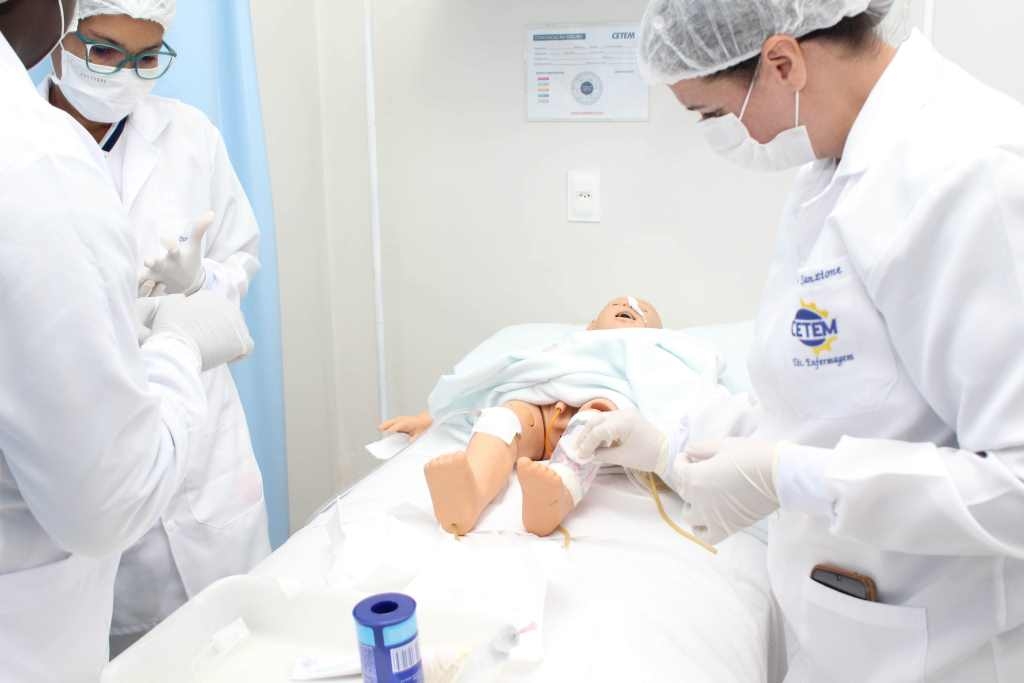 Aula prática curso Técnico em Enfermagem professora Rosemara