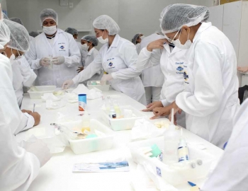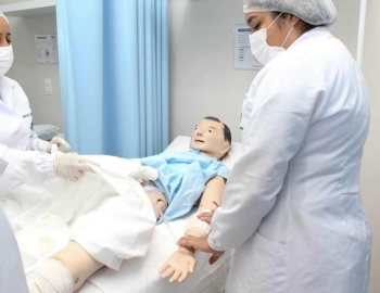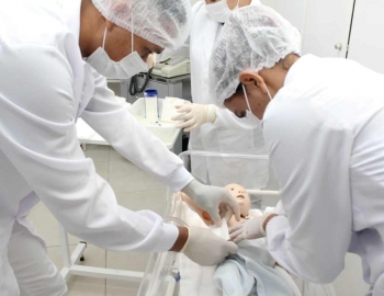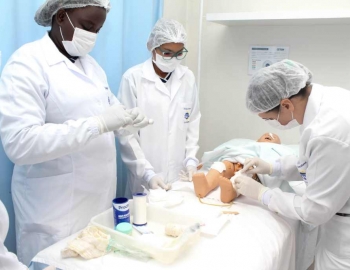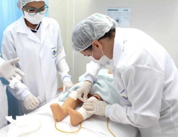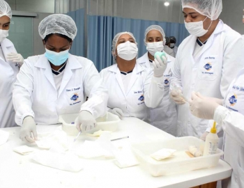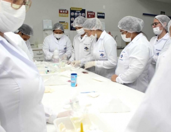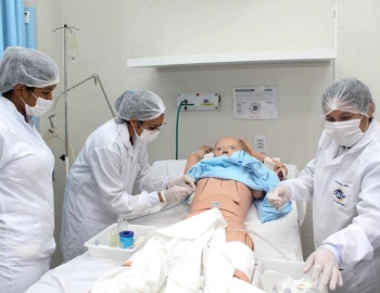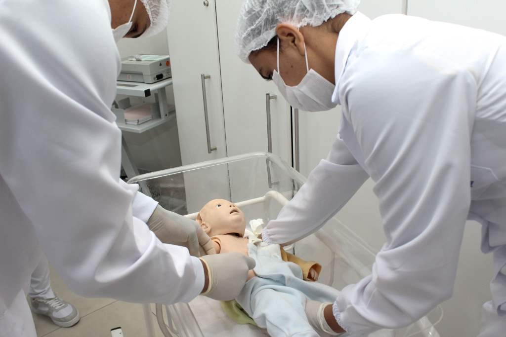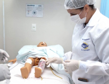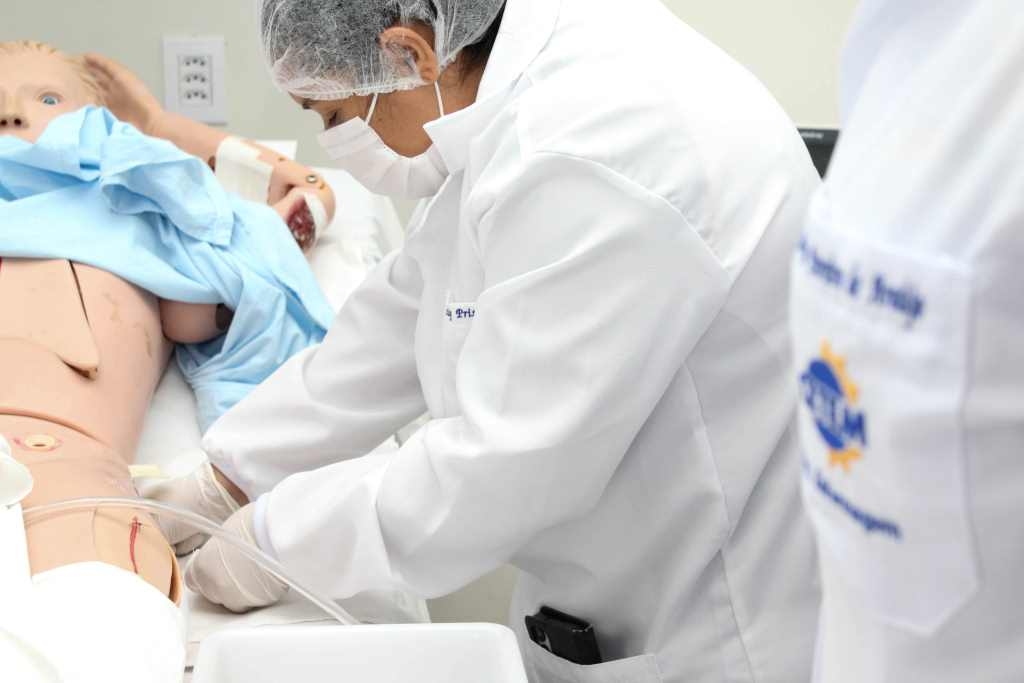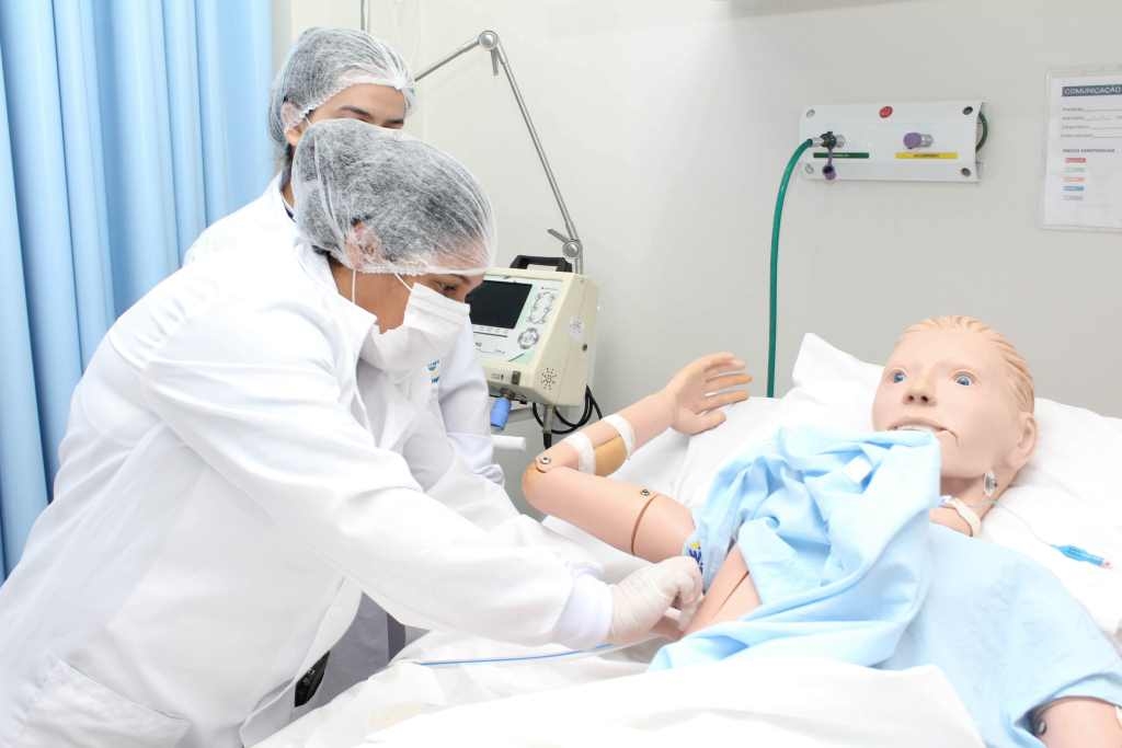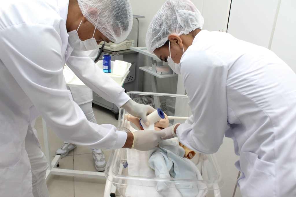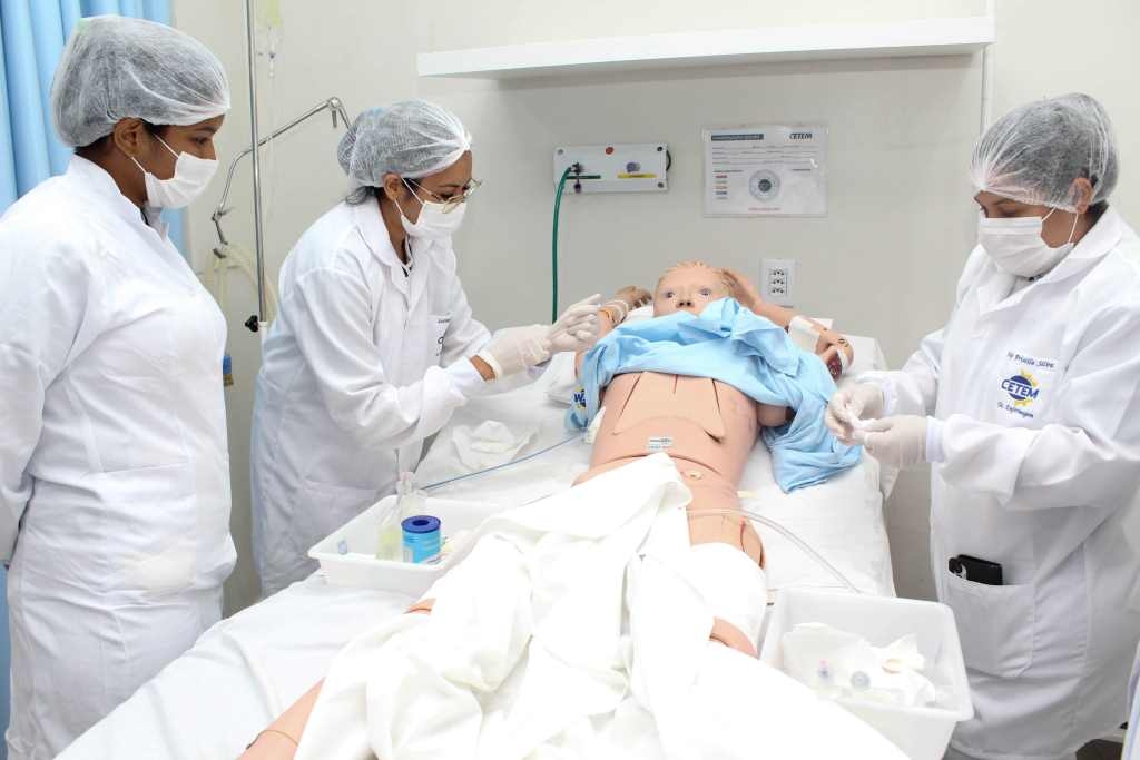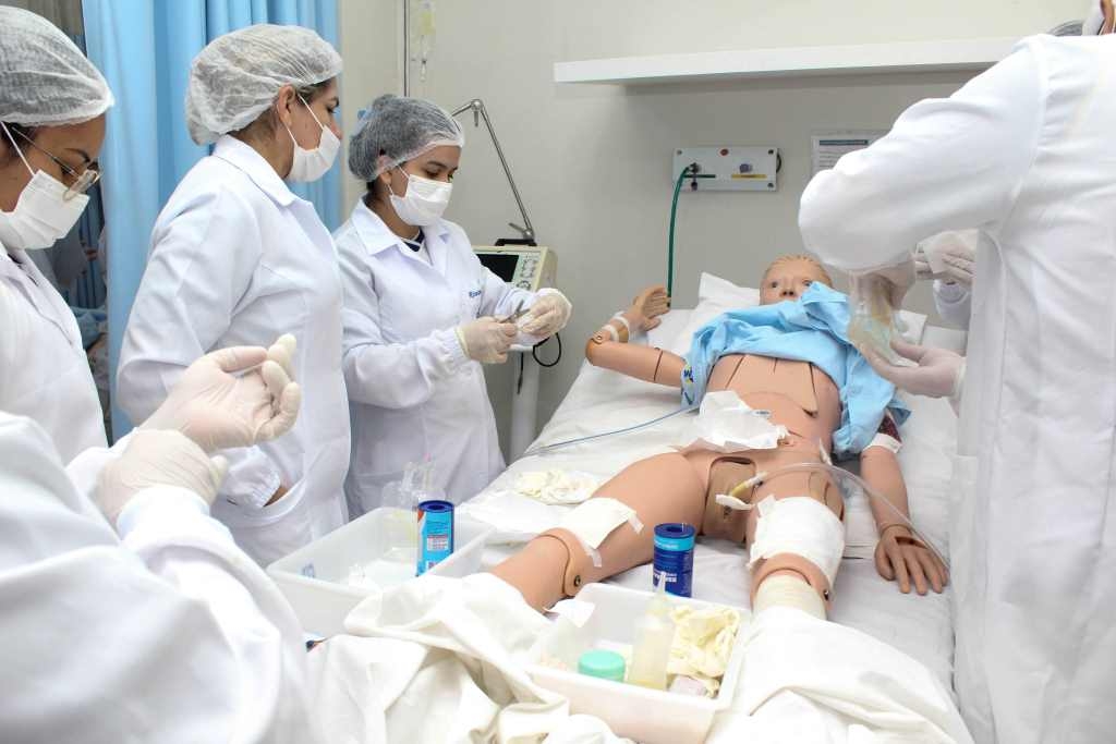 Aula prática curso Técnico em Enfermagem professora Rosemara