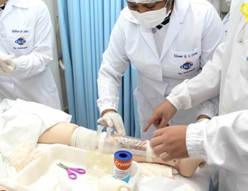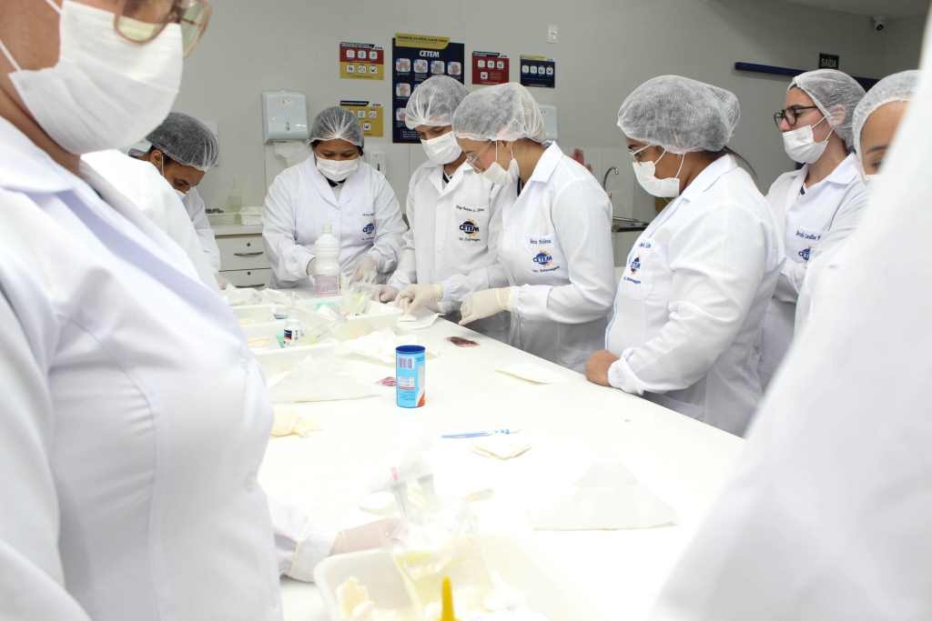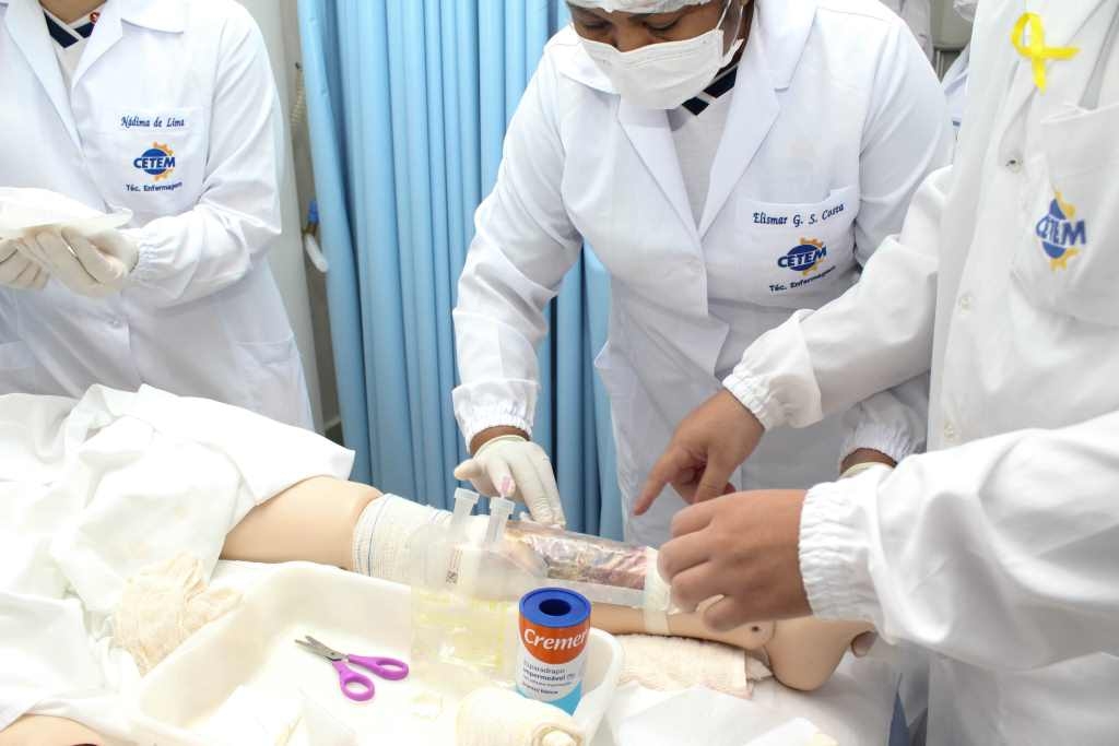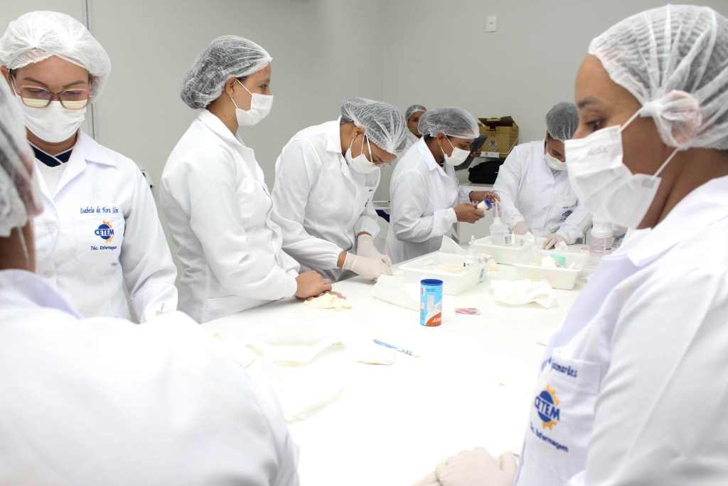 A turma do curso Técnico em Enfermagem colocou o conhecimento em prática durante a aula sobre feridas e curativos. Sob a orientação da professora Rosemara, nossos futuros profissionais aprimoraram suas habilidades e se prepararam para os desafios da área, garantindo o melhor cuidado aos pacientes.