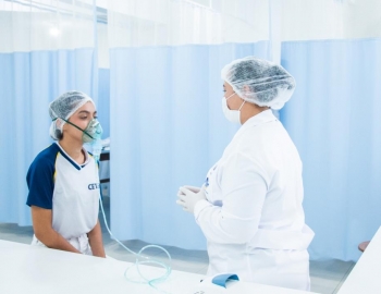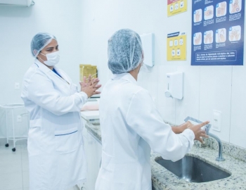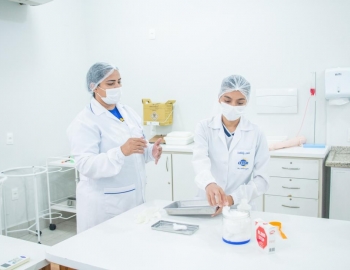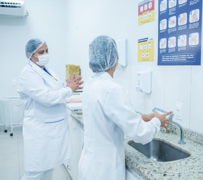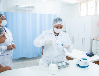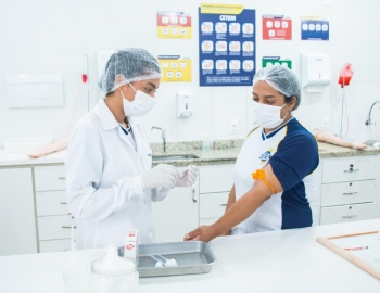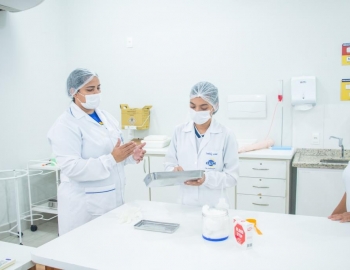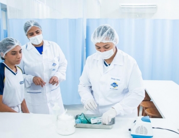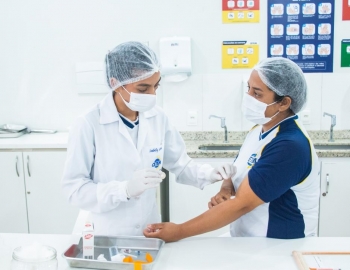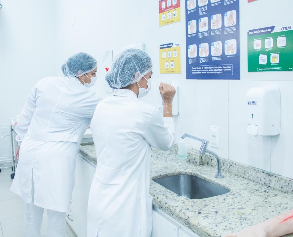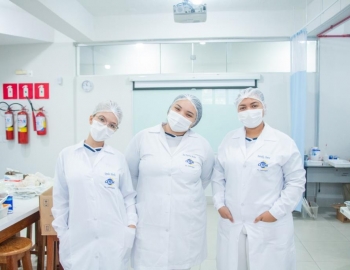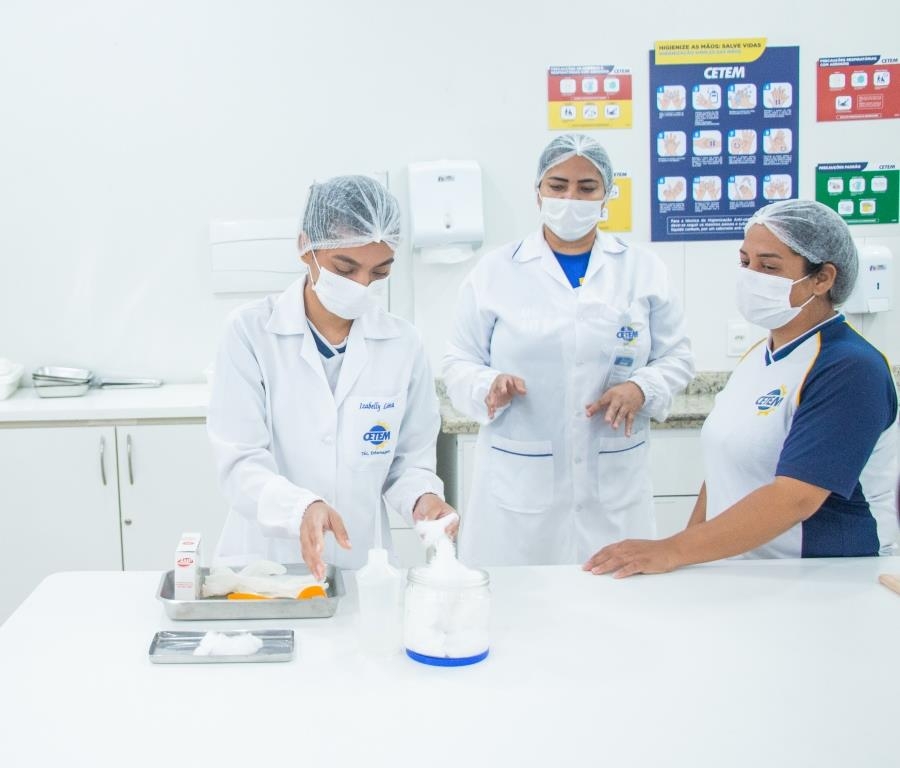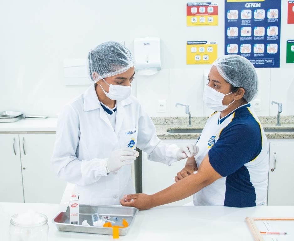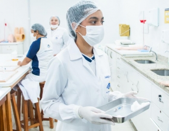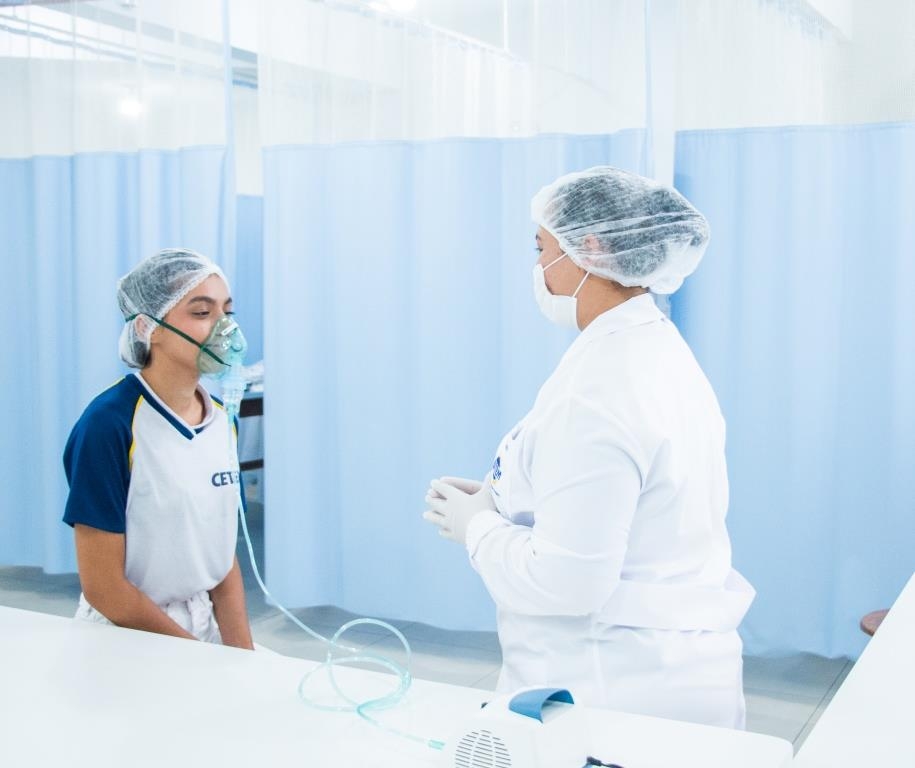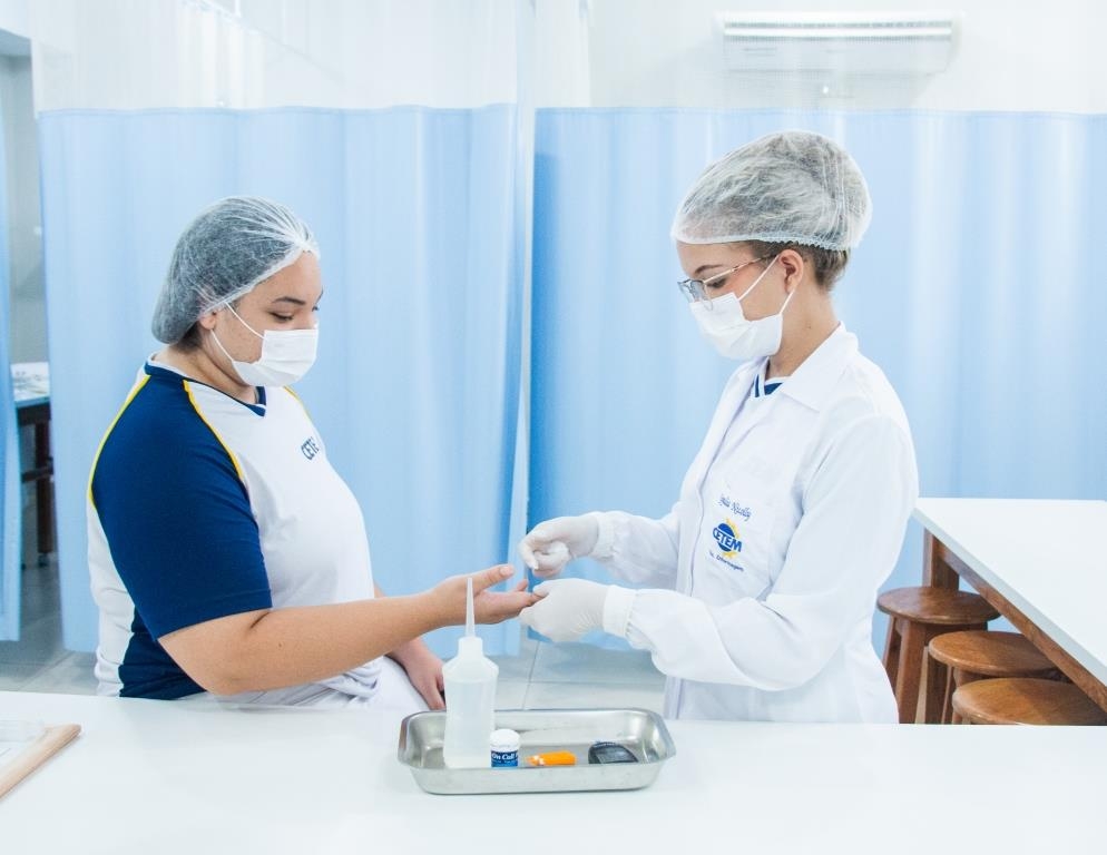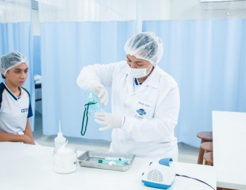 Aula prática das alunas do curso Técnico em Enfermagem no laboratório