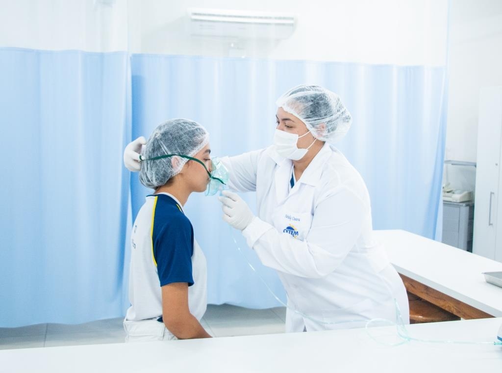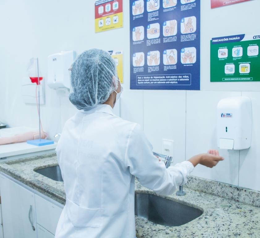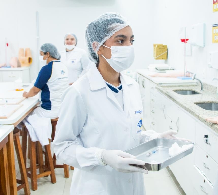 Nossos alunos do curso Técnico em Enfermagem em aula prática essencial no laboratório, garantindo que as técnicas e procedimentos sejam dominados com segurança e precisão.