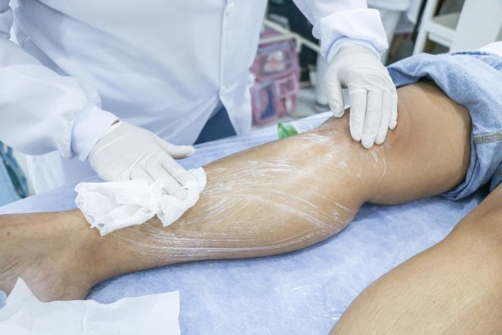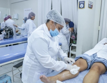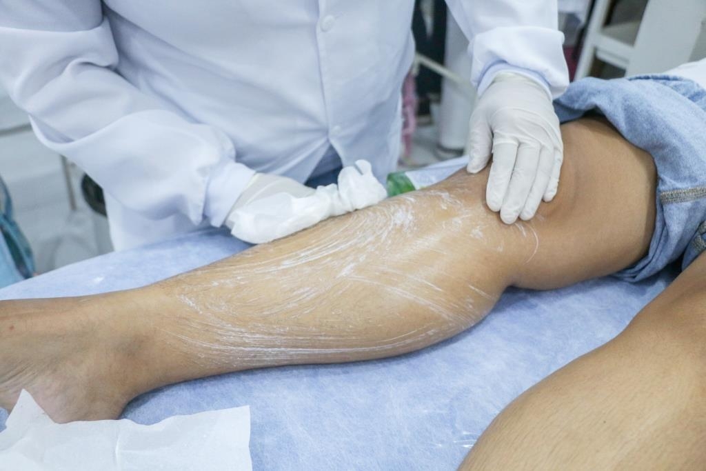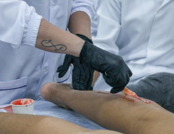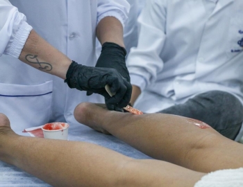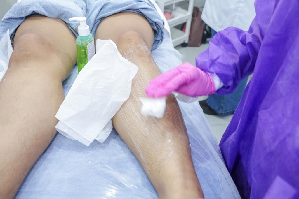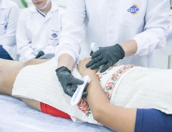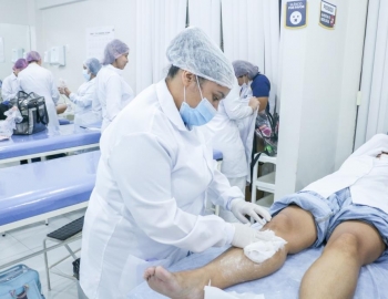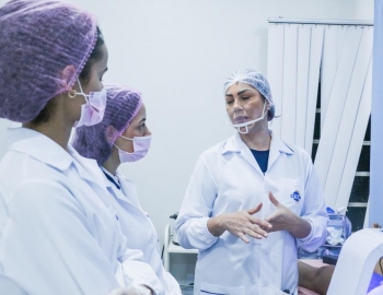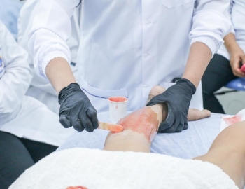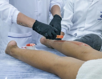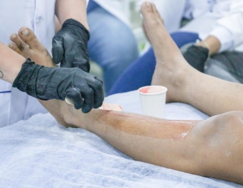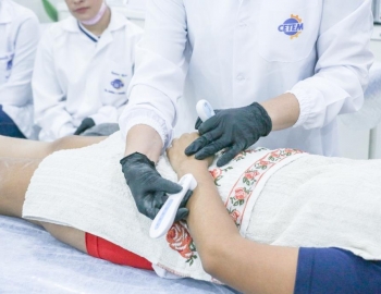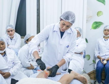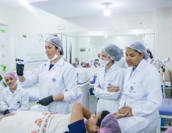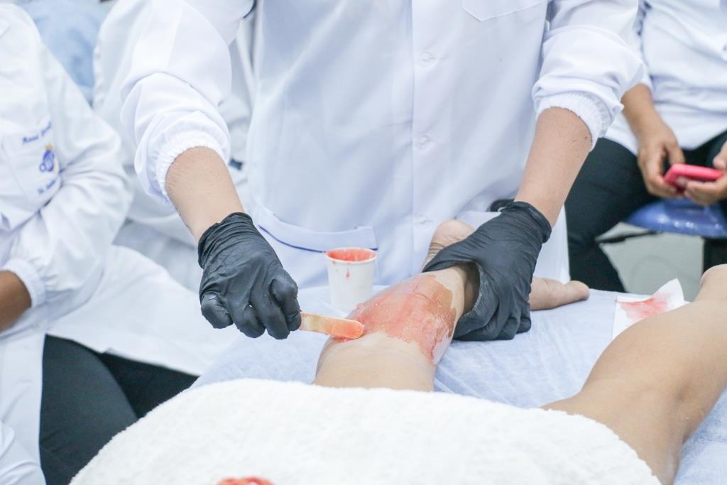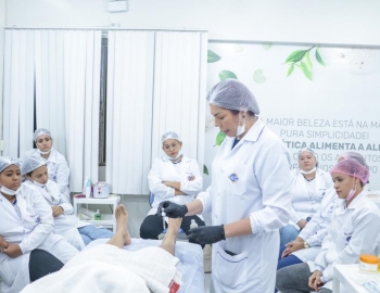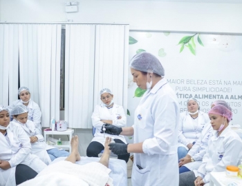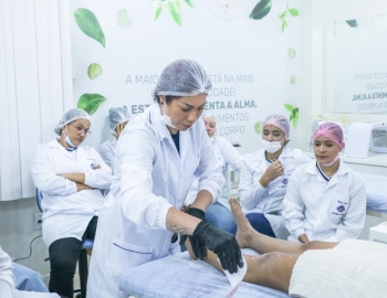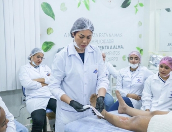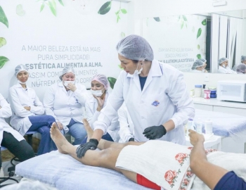 Aula prática de epilação com a turma do curso Técnico em Estética