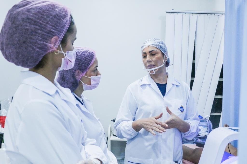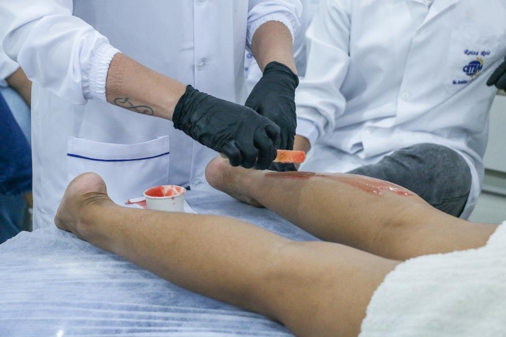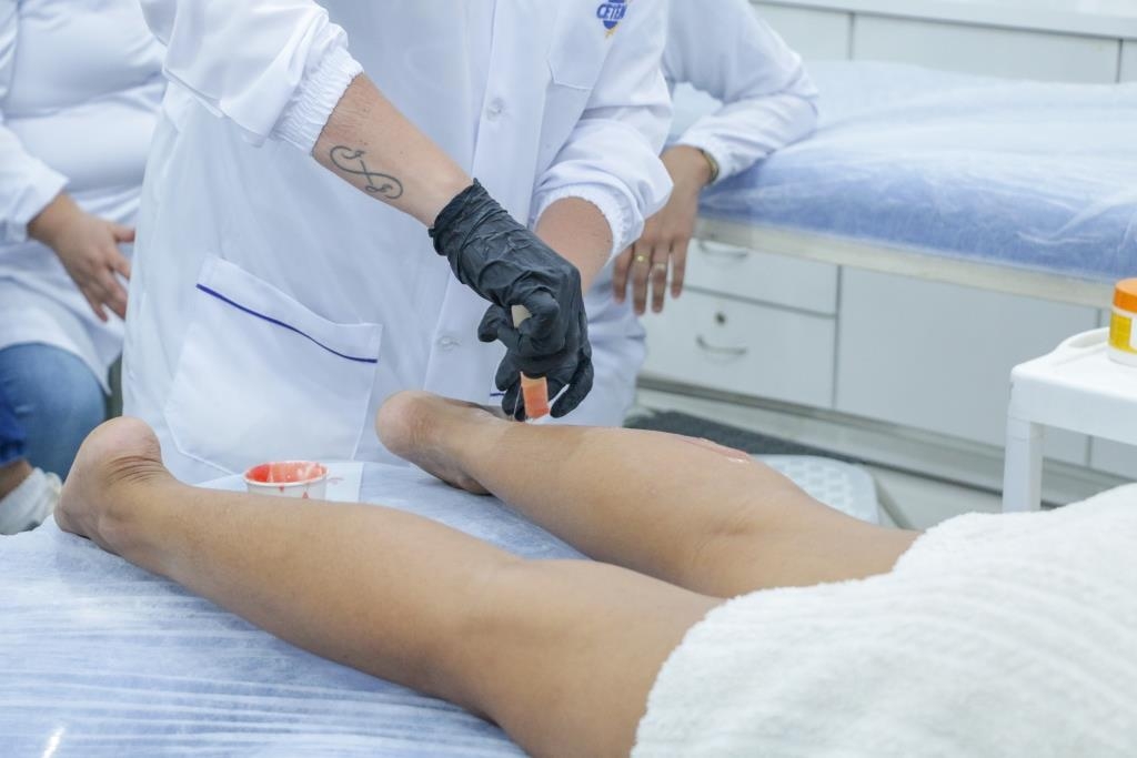 Muito além da técnica de remoção de pelos, a aula prática de epilação do nosso Curso Técnico em Estética é um mergulho na responsabilidade profissional. É o momento em que nossas alunas transpõem a teoria e dominam protocolos rigorosos: do descarte correto à prevenção total de contaminação cruzada.