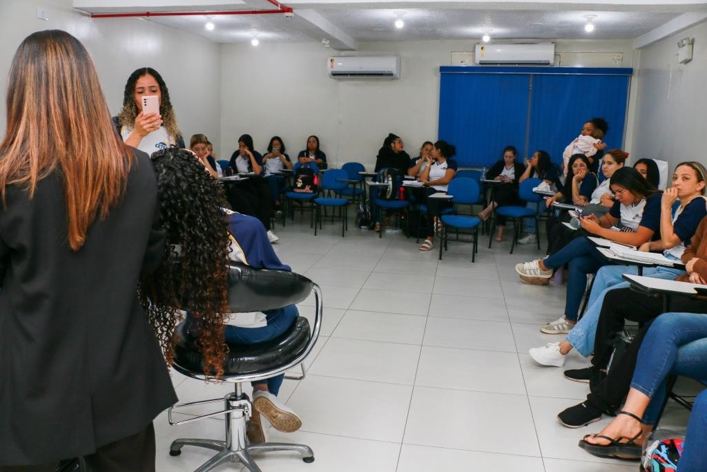 A turma 641 de Estética participou de uma palestra super especial nesta segunda-feira, 8 de setembro, sobre design de sobrancelhas, conduzida pela expert Jayne Souza.