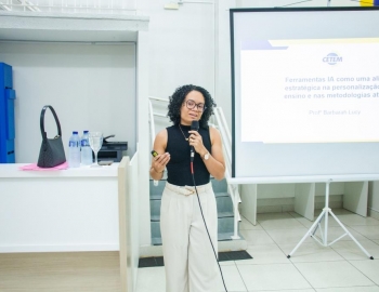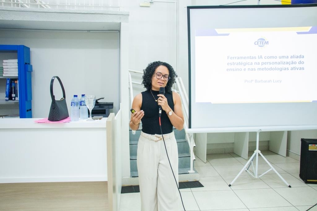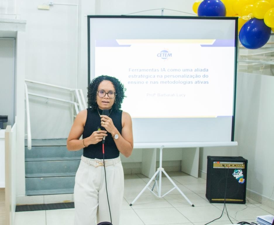 A excelência do CETEM passa pela atualização constante dos nossos mestres. o segundo dia da Semana Pedagógica teve como foco o Workshop ministrado pela Prof.ª M.e Bárbara Lucy Pinheiro de Aguiar, que trouxe insights valiosos sobre ferramentas de IA e metodologias ativas.