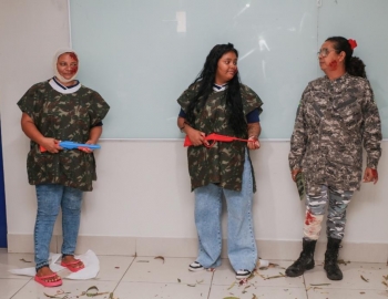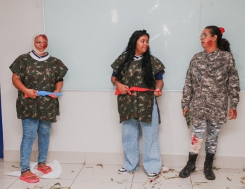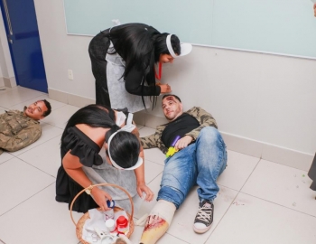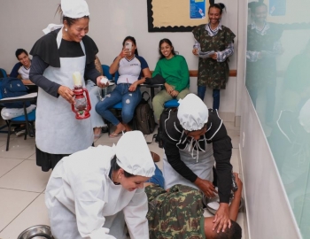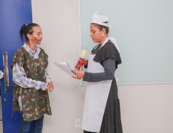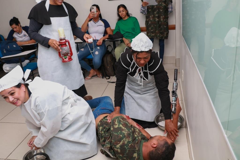 Nossos futuros profissionais do curso Técnico em Enfermagem estão aprofundando seus conhecimentos no bloco de Fundamentos da Enfermagem de uma forma memorável: através da dramatização.