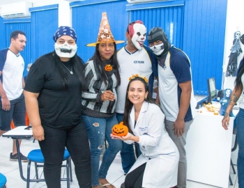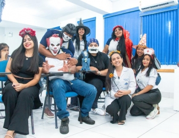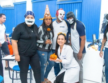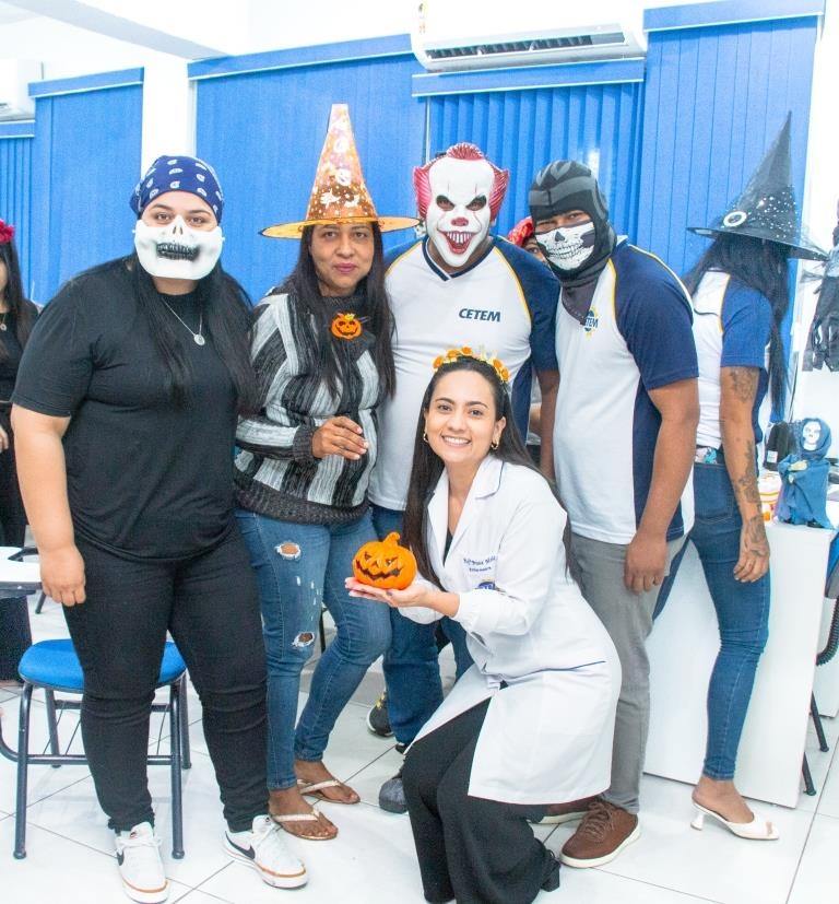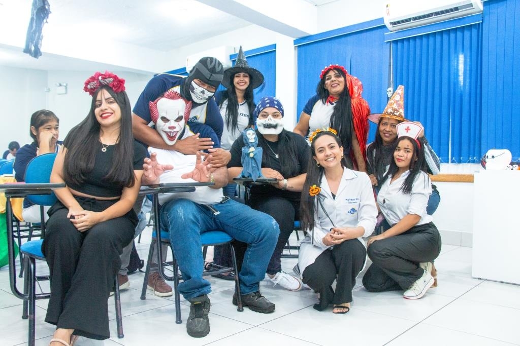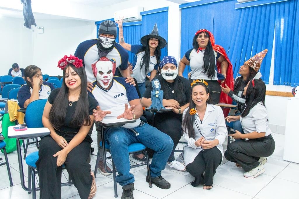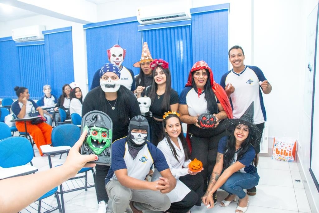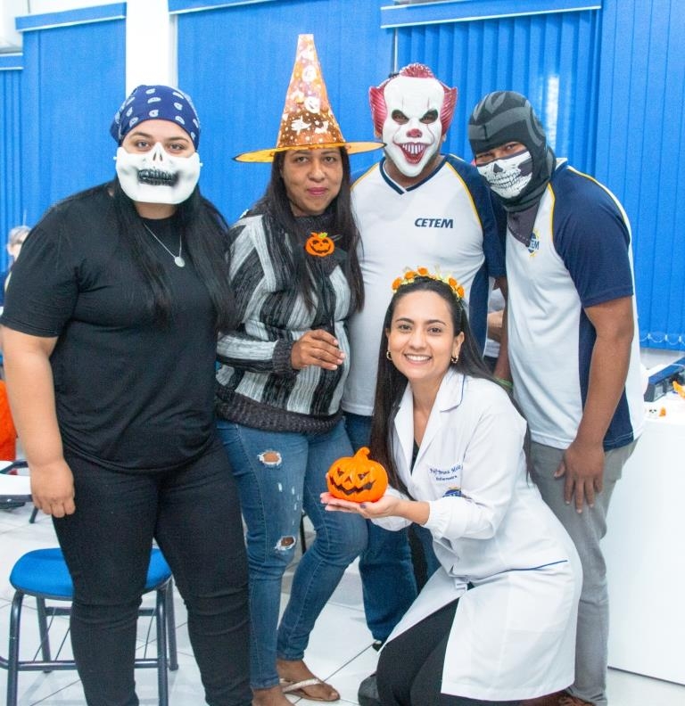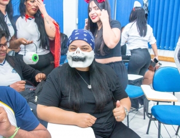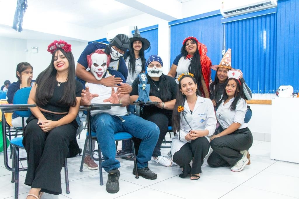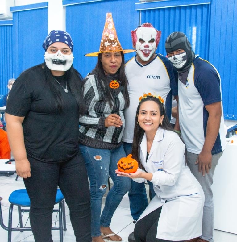 A Turma 160 do curso Técnico em Enfermagem trocou os jalecos por fantasias assustadoramente criativas e realizou uma confraternização de Halloween.