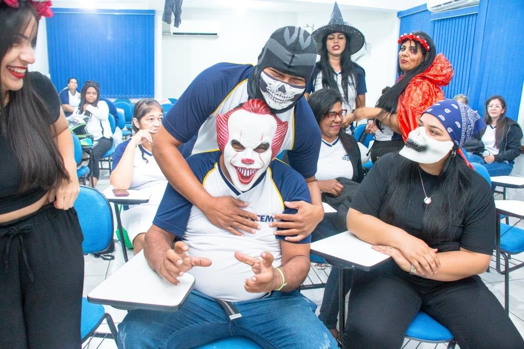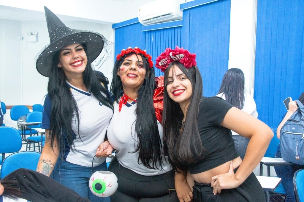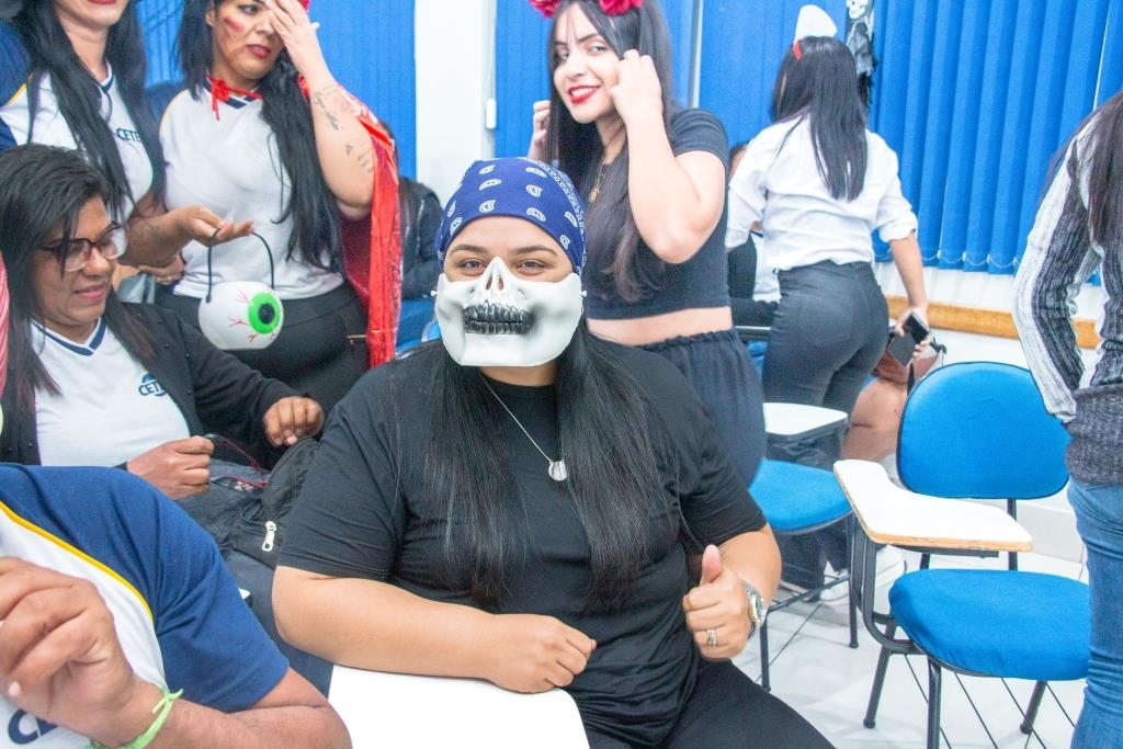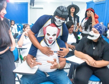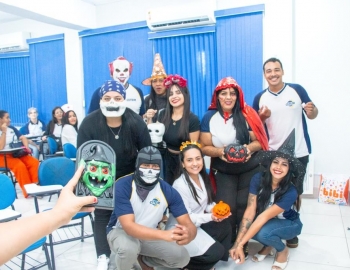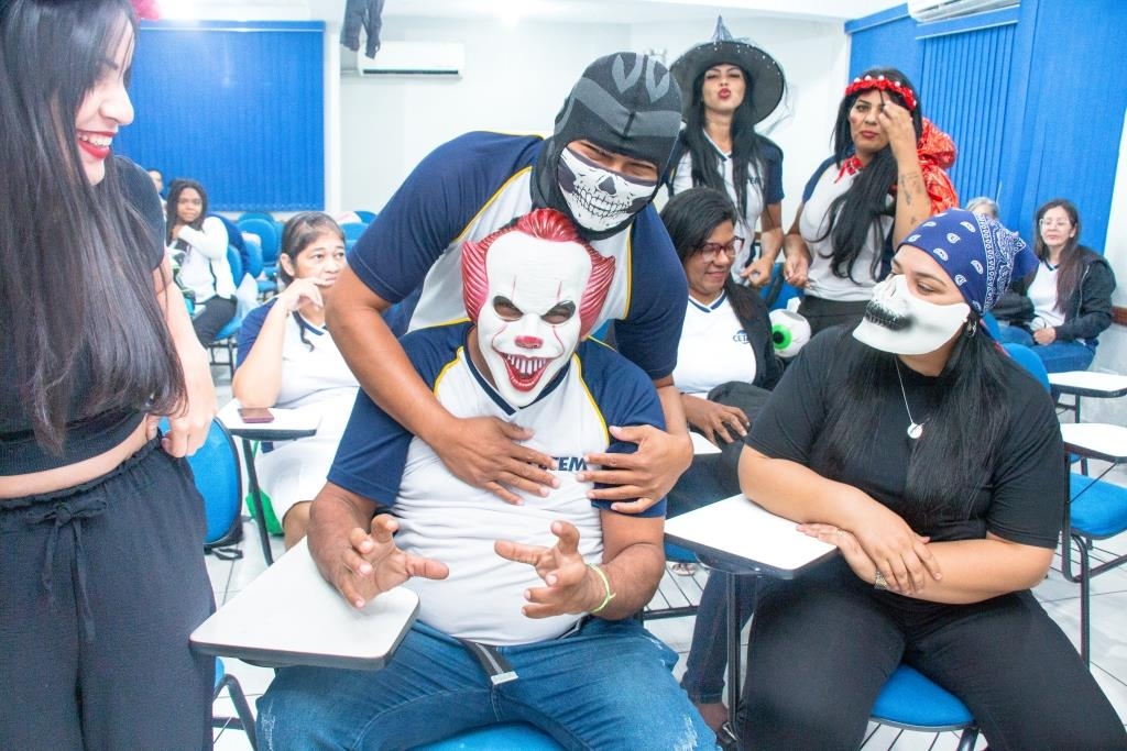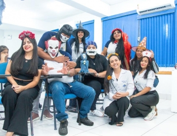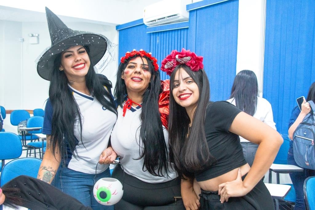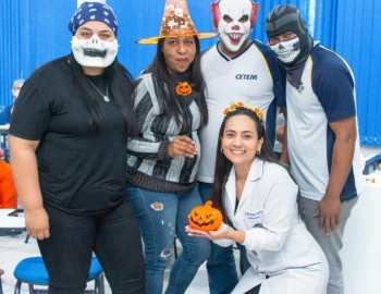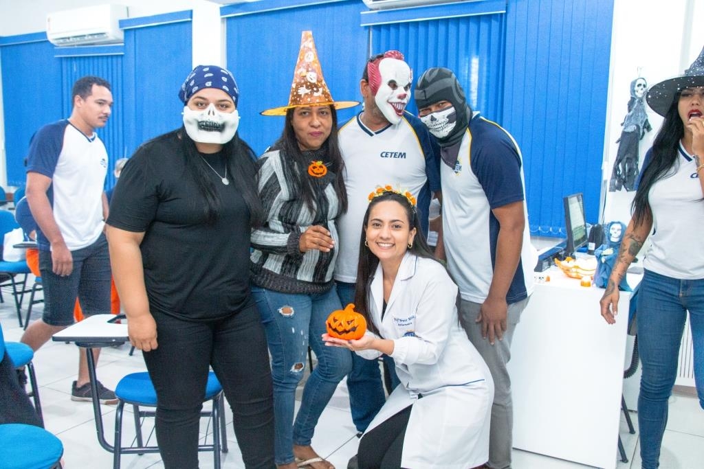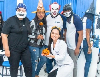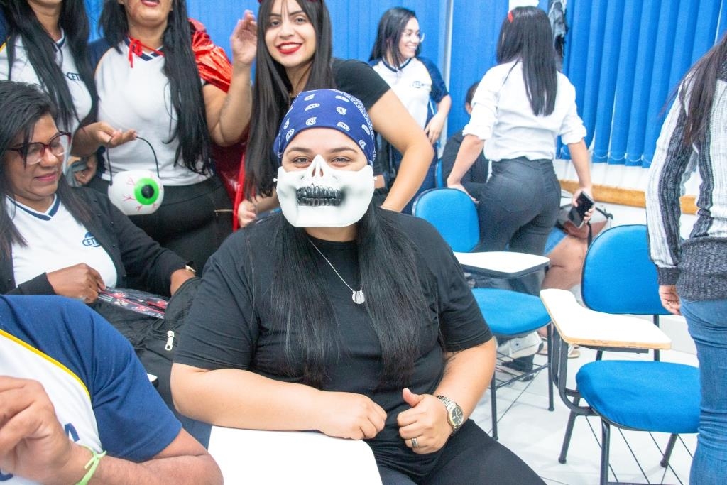 A Turma 160 do curso Técnico em Enfermagem trocou os jalecos por fantasias assustadoramente criativas e realizou uma confraternização de Halloween.