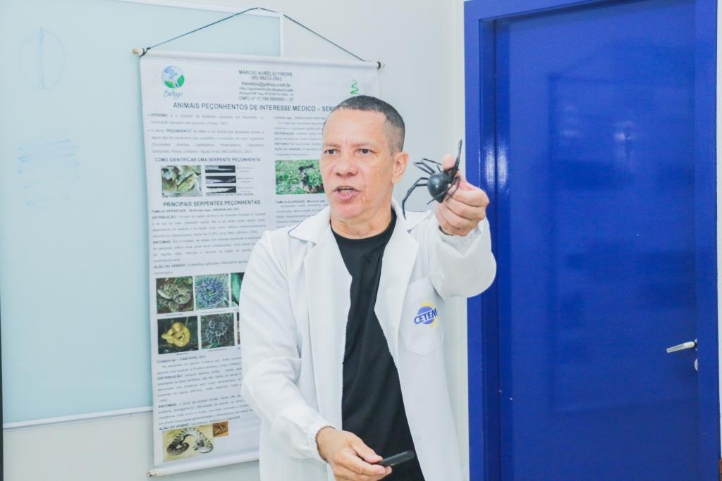 Os alunos da Turma 510 participaram de uma aula fundamental sobre Animais Peçonhentos, ministrada pelo professor Márcio Freire. O objetivo foi capacitar os futuros técnicos para identificar espécies, compreender riscos ambientais e, principalmente, orientar trabalhadores sobre medidas preventivas e primeiros socorros em caso de acidentes.