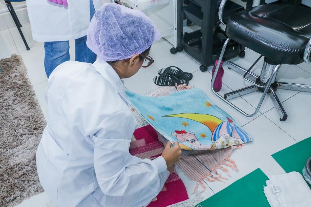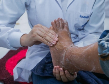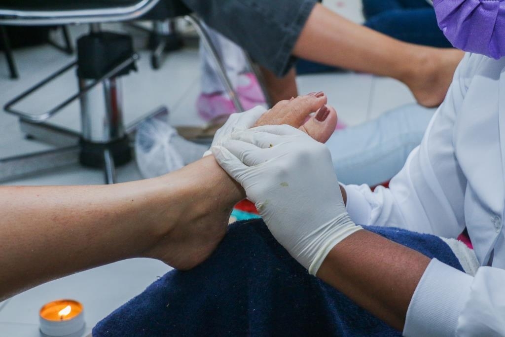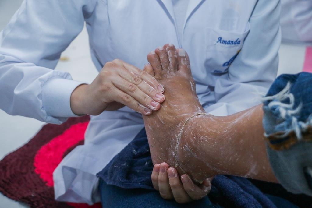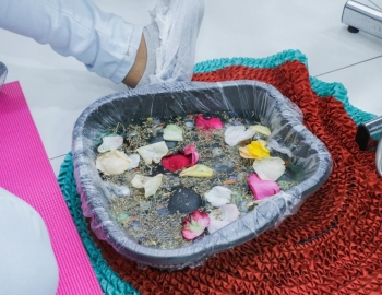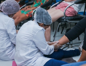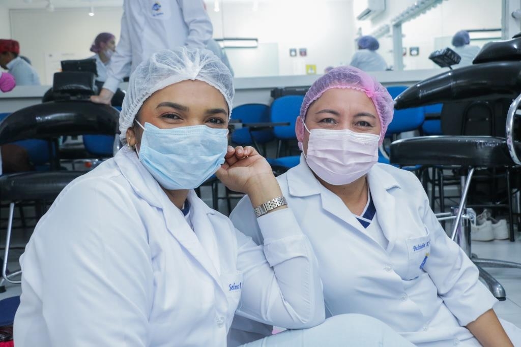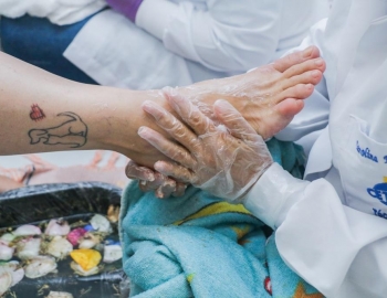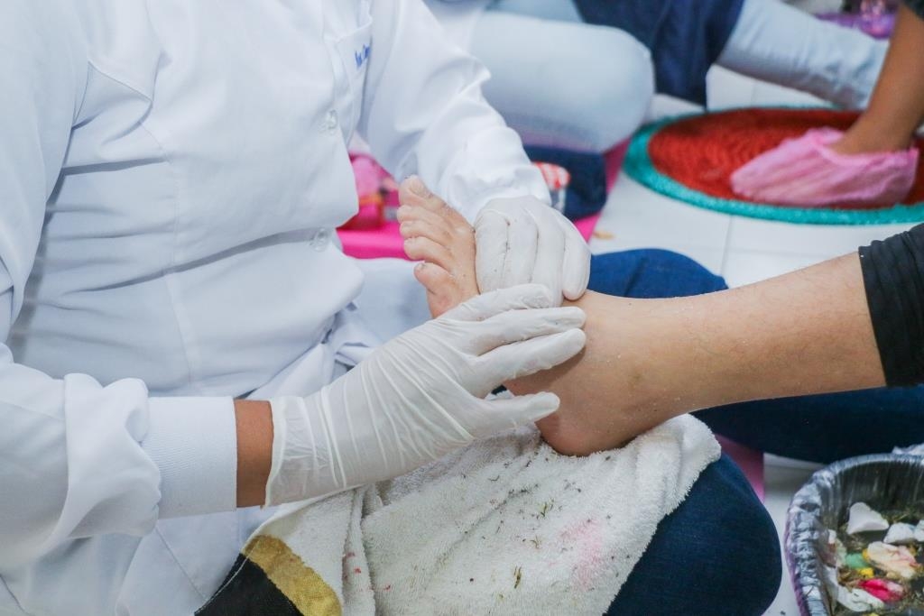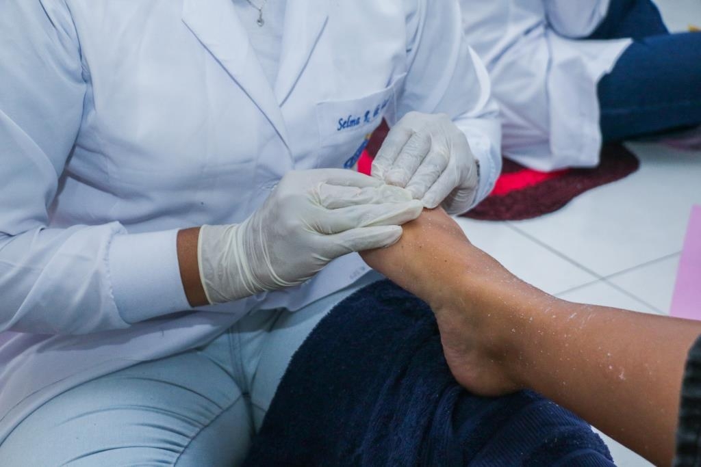Registro da aula prática da Turma 642 (Técnico em Estética) explorando as Técnicas Spazianas. O escalda-pés é o primeiro passo para um protocolo de relaxamento inesquecível.